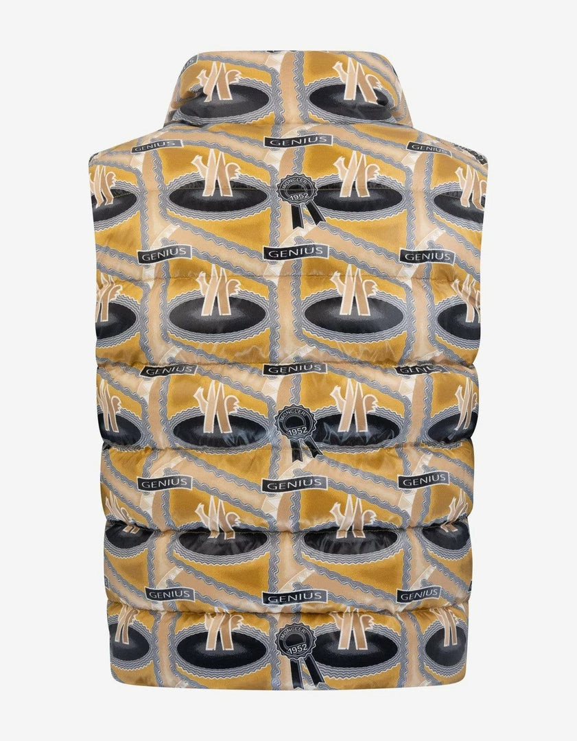 - Nylon laqué “Genius” print vest with solid contrast colour lining