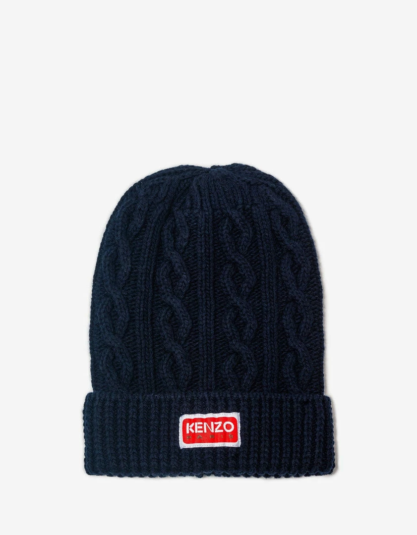 This wool cap, a perfect companion for the winter season, offers an elegant reinterpretation of one of the most iconic vintage fashion accessories. The piece showcases cable-knit motifs, and the wide brim at the front features a contrasting KENZO Paris logo.