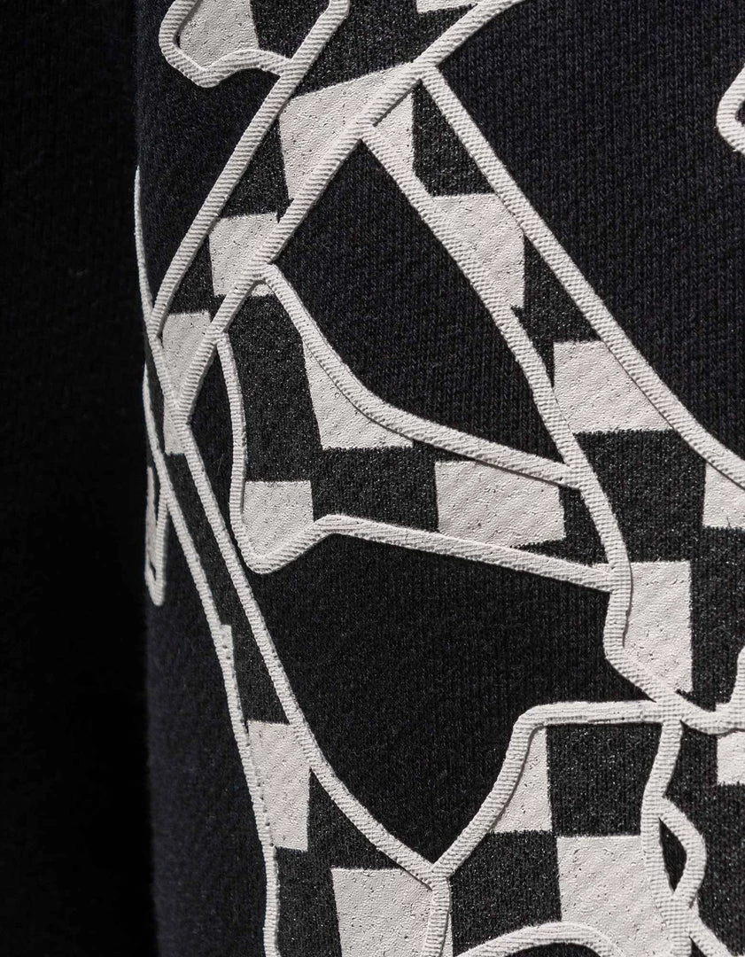 - Checkboard bones motif on the sleeves