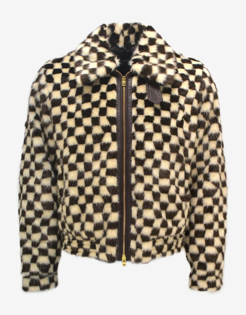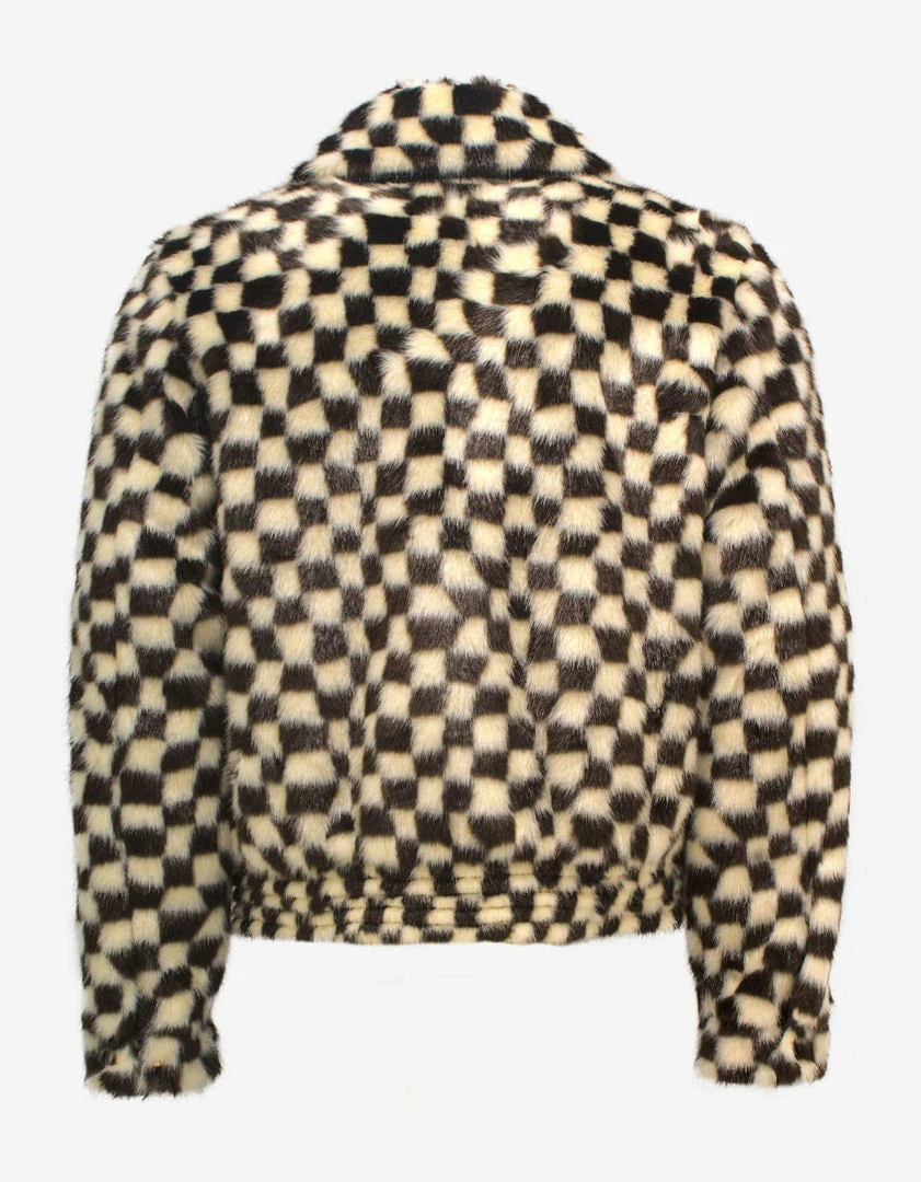 - Black and White checkered faux fur blouson jacket