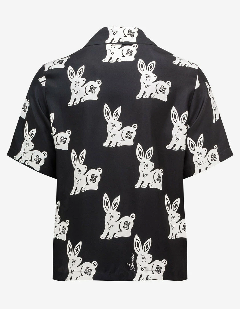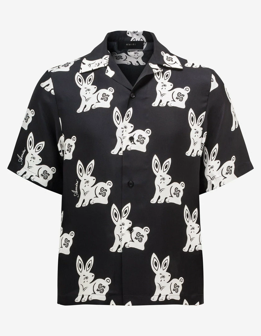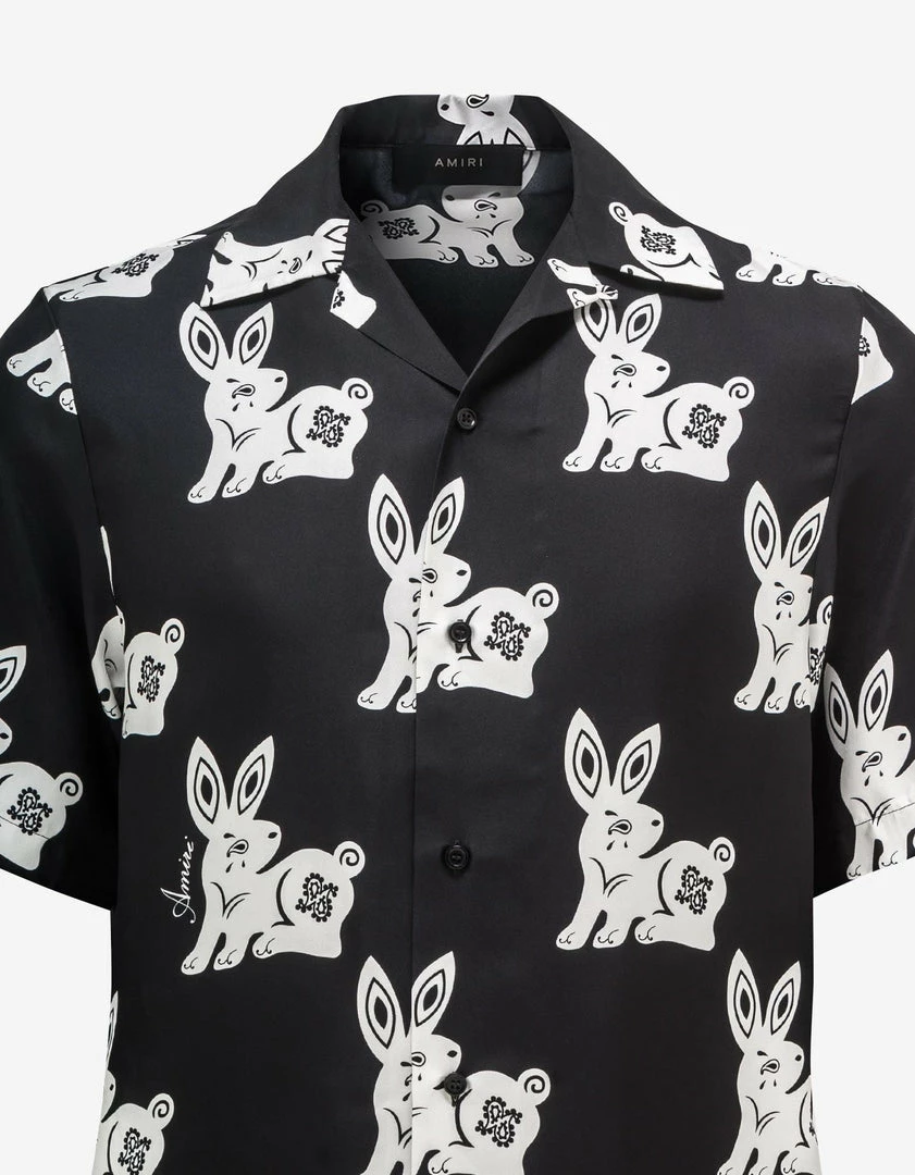 New ๐ Amiri Clothing Black Rabbit Allover Bowling ๐ Shirt โจ