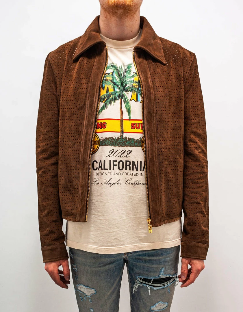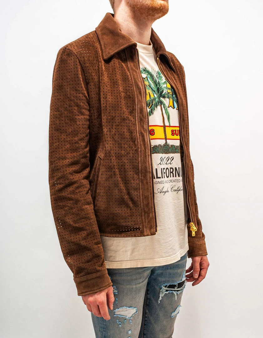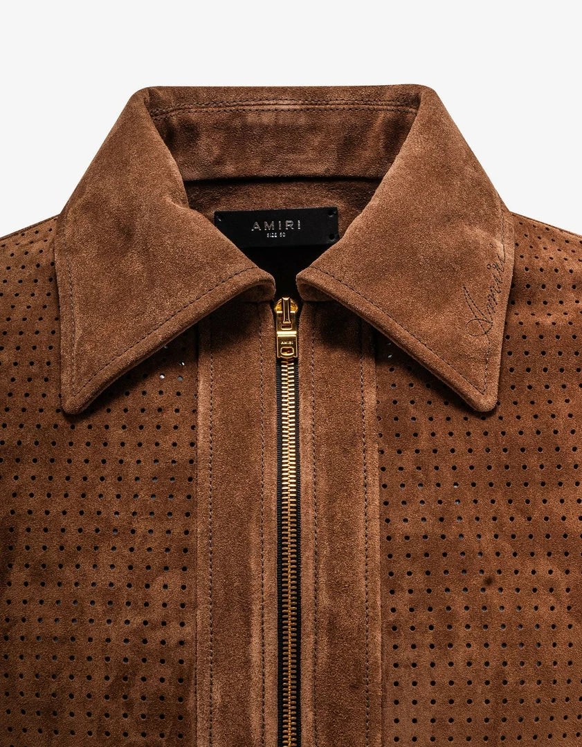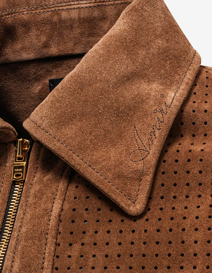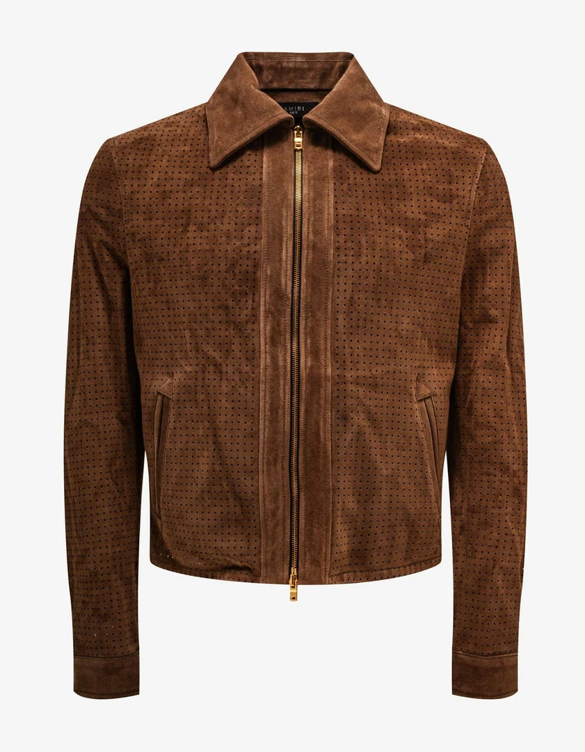 New ✨ Amiri Clothing Brown Perforated Suede Leather Jacket 👍