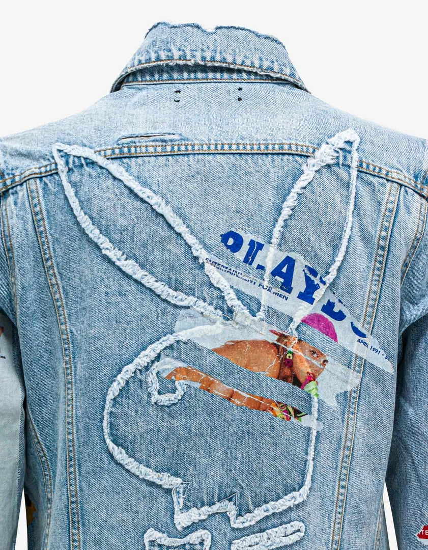 - Iconic Playboy bunny frayed denim silhouette on the back