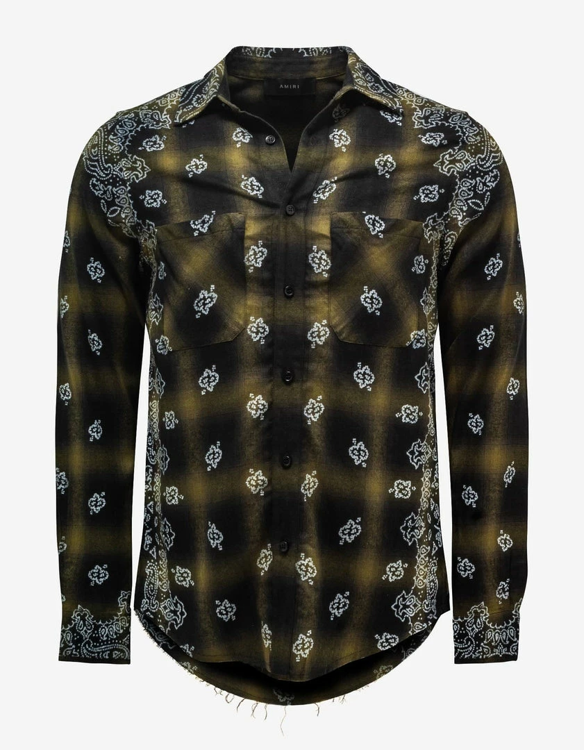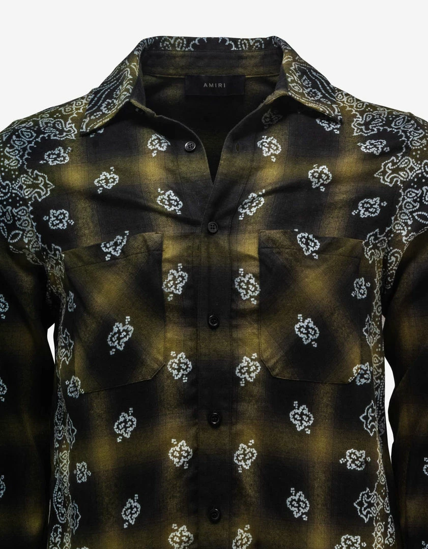 Cheapest ๐ฅ Amiri Green Bleach Bandana Shadow Plaid ๐ Shirt Clothing โค๏ธ