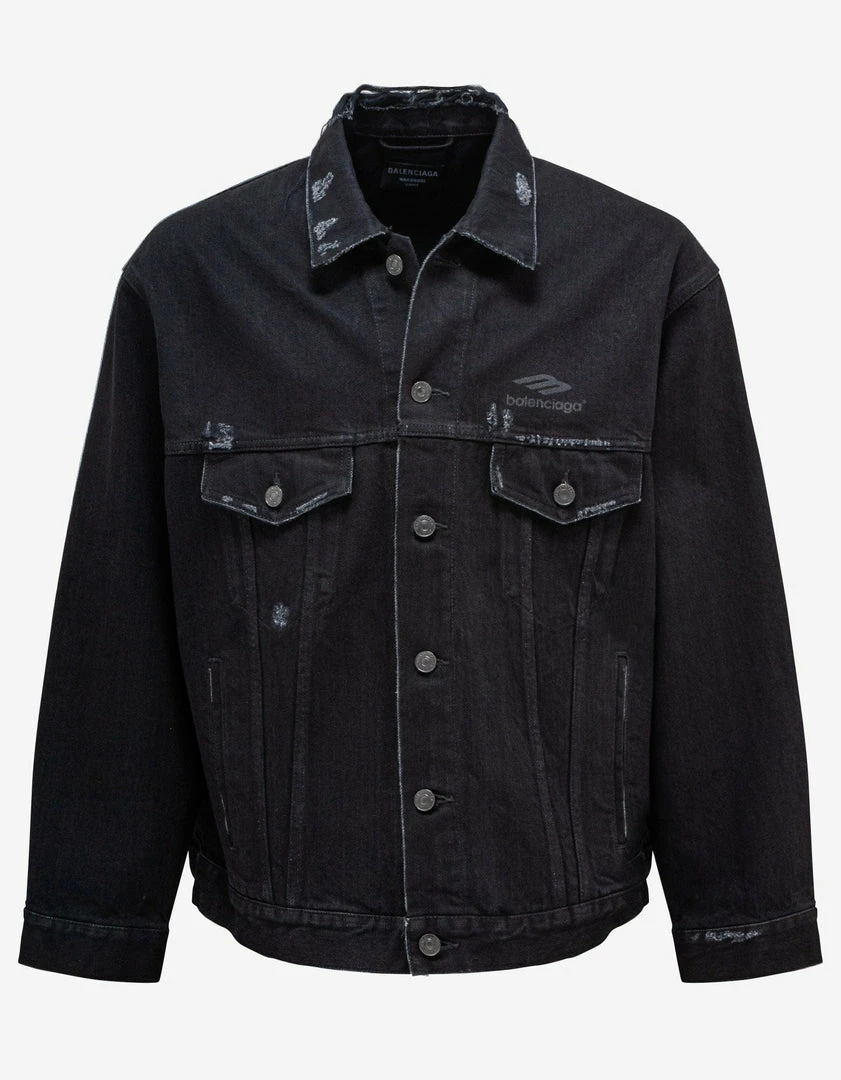 Outlet π₯ Balenciaga Black 3B Sports Large Fit Denim Jacket β€οΈ