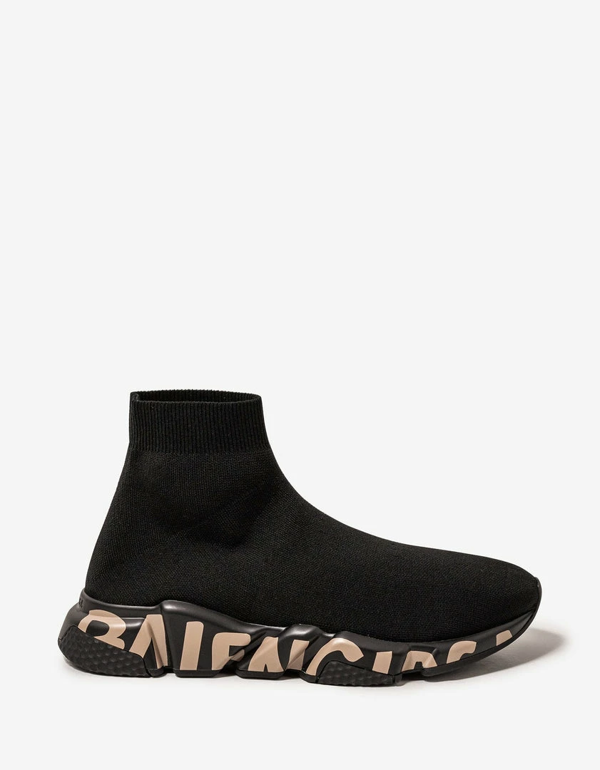 Discount β Balenciaga Black Graffiti Logo Speed Trainers π