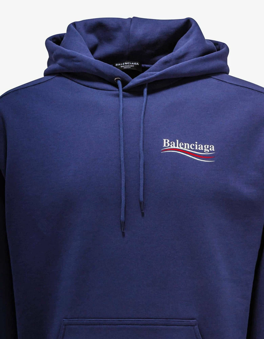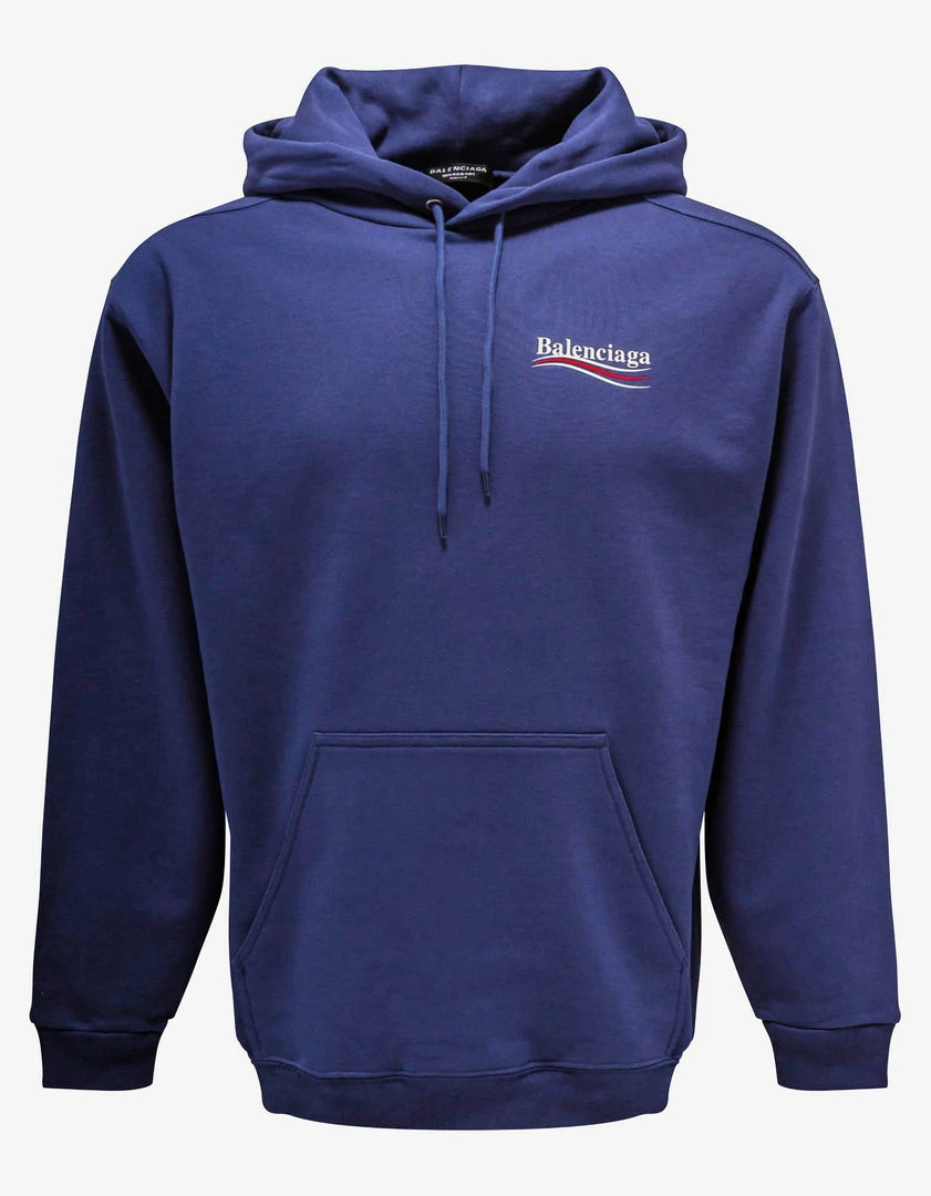 Wholesale ⭐ Balenciaga Blue Political Logo Print Medium Fit Hoodie Sweats ✨