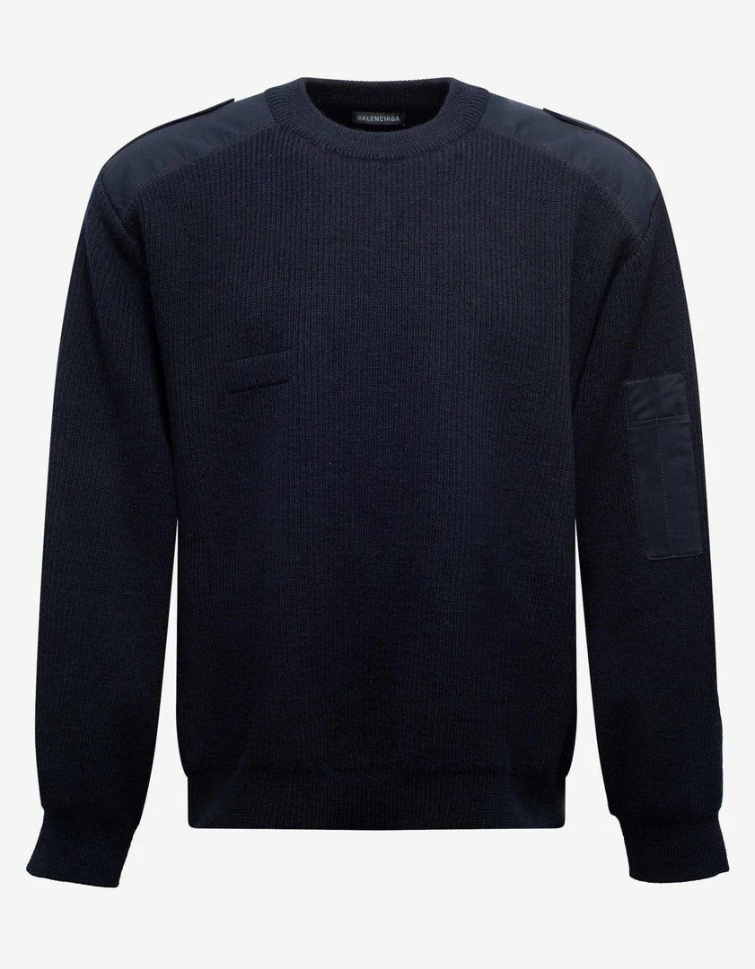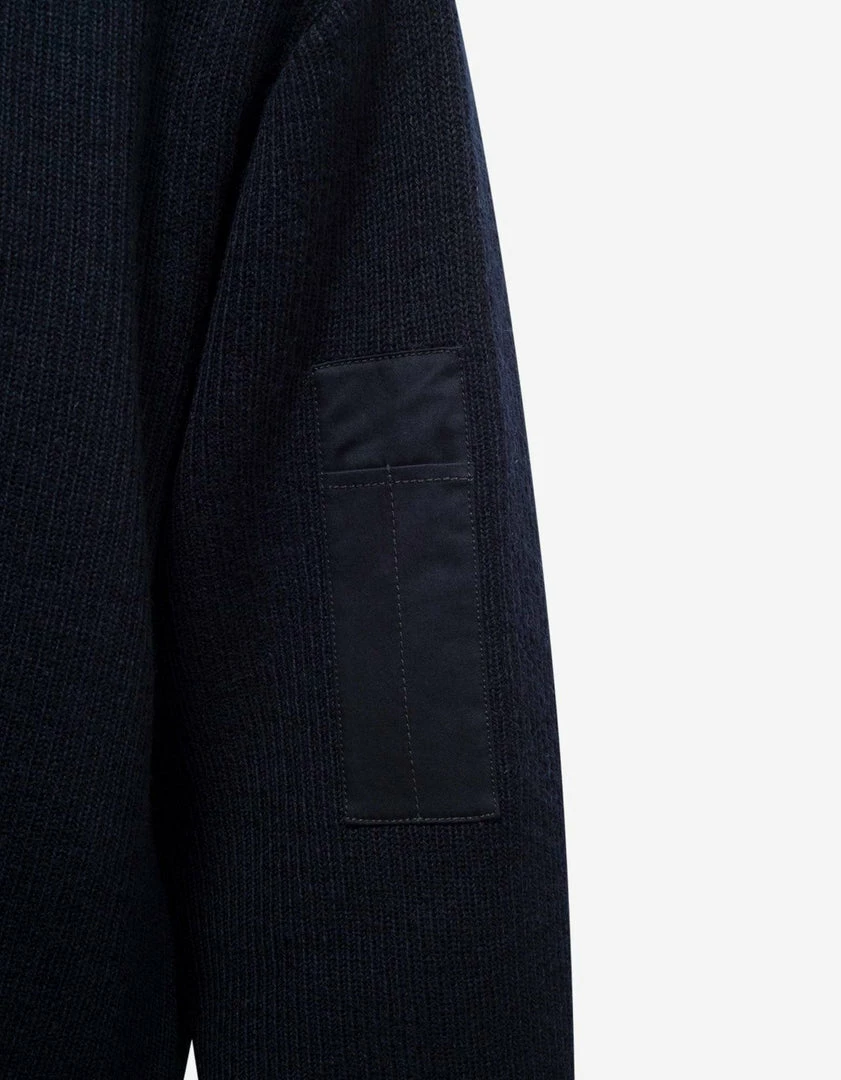 - Military-inspired cotton panels at the shoulders, elbows and left sleeve