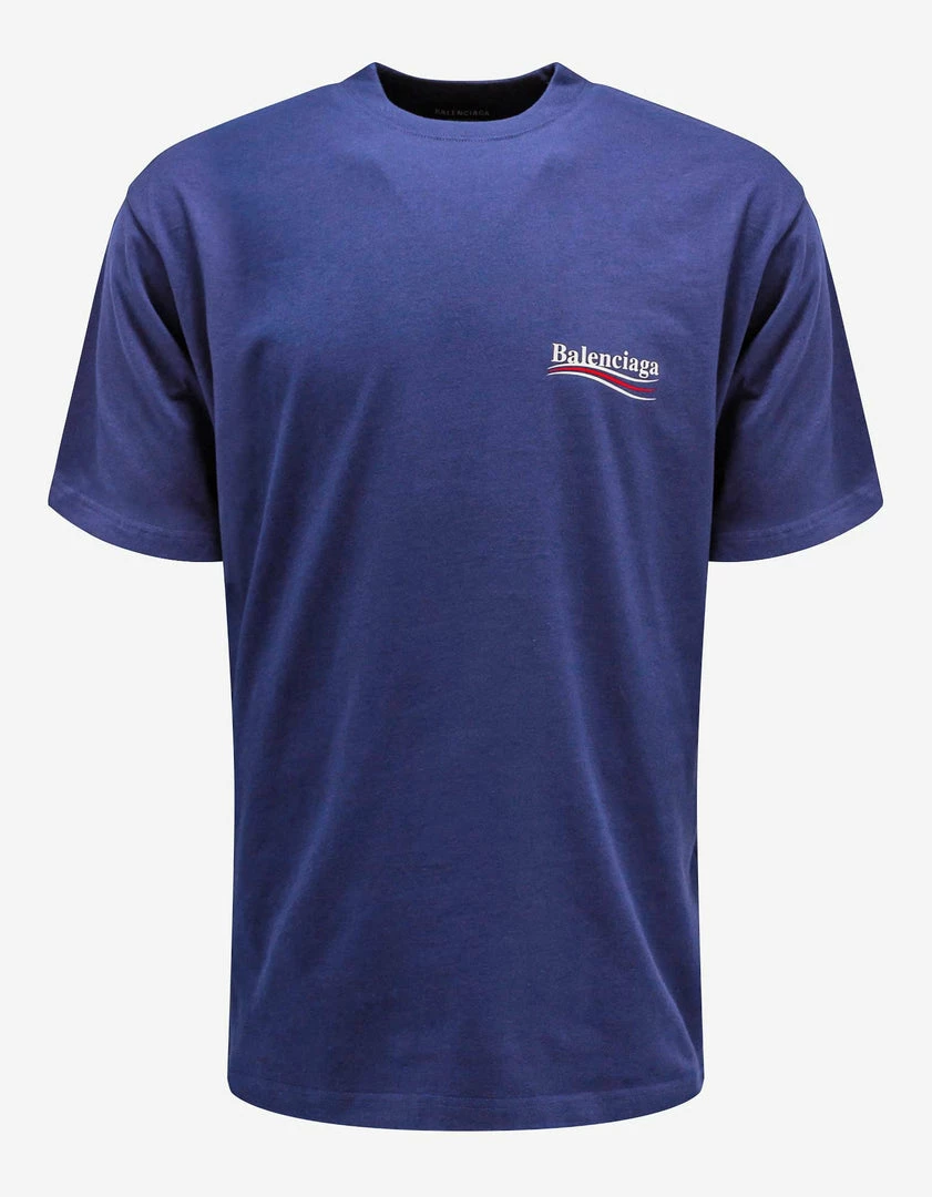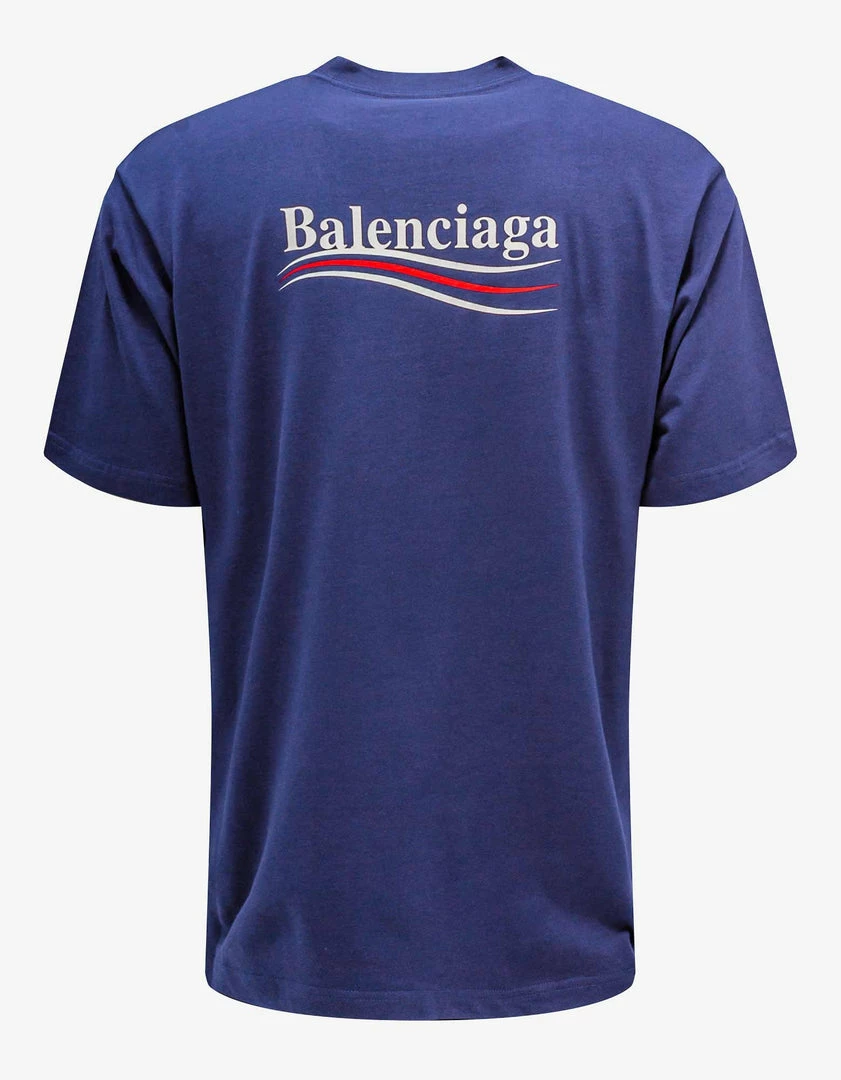 Promo ๐ Balenciaga T-Shirts Blue Political Logo Print Large Fit T-Shirt โค๏ธ