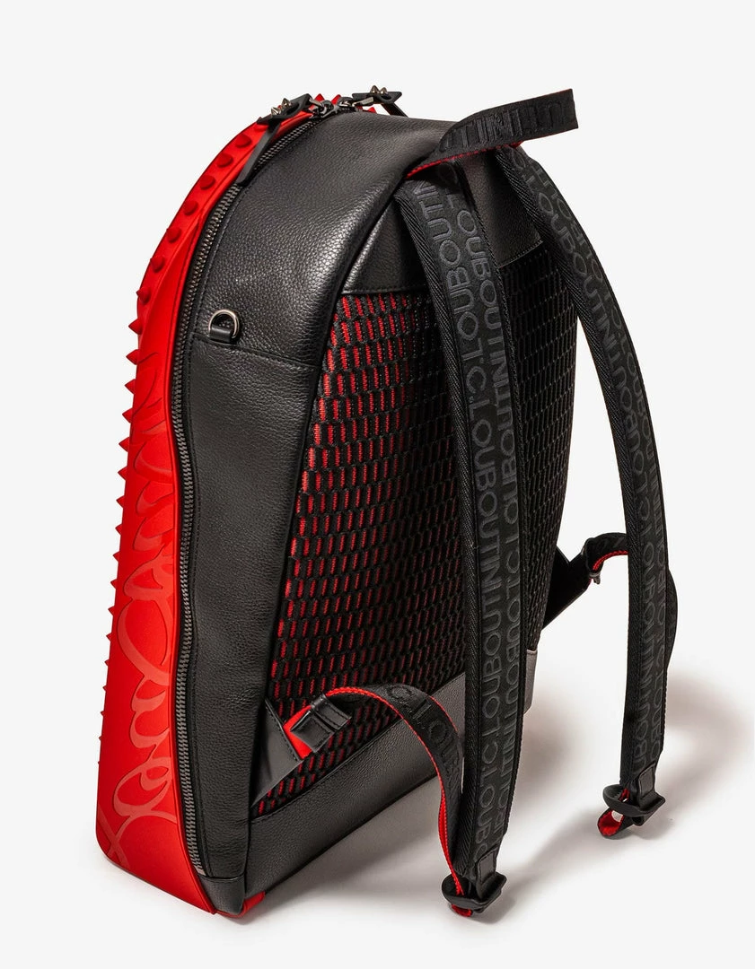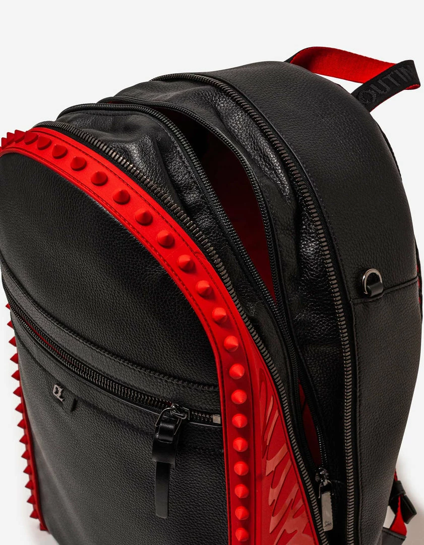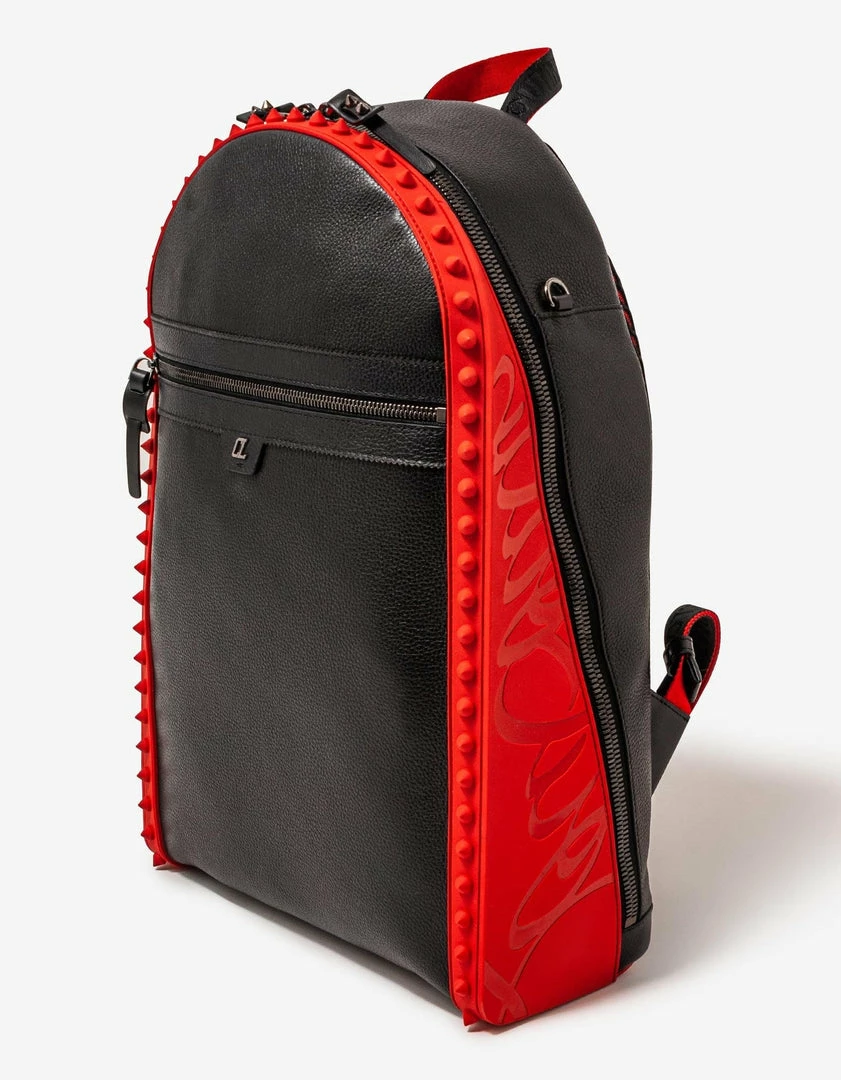 Inspired by student life, the Backparis backpack stands out on account of its modern style. This version is made from black grained calfskin and red rubber, reminiscent of the soles of Maison Christian Louboutin sneakers. Trimmed with the brand’s signature red and silver spikes, this practical accessory is finished with the CL monogram.