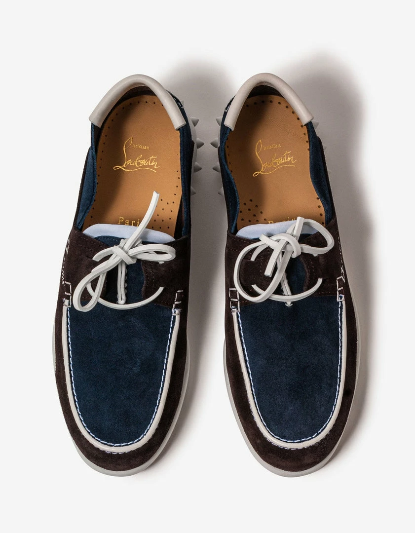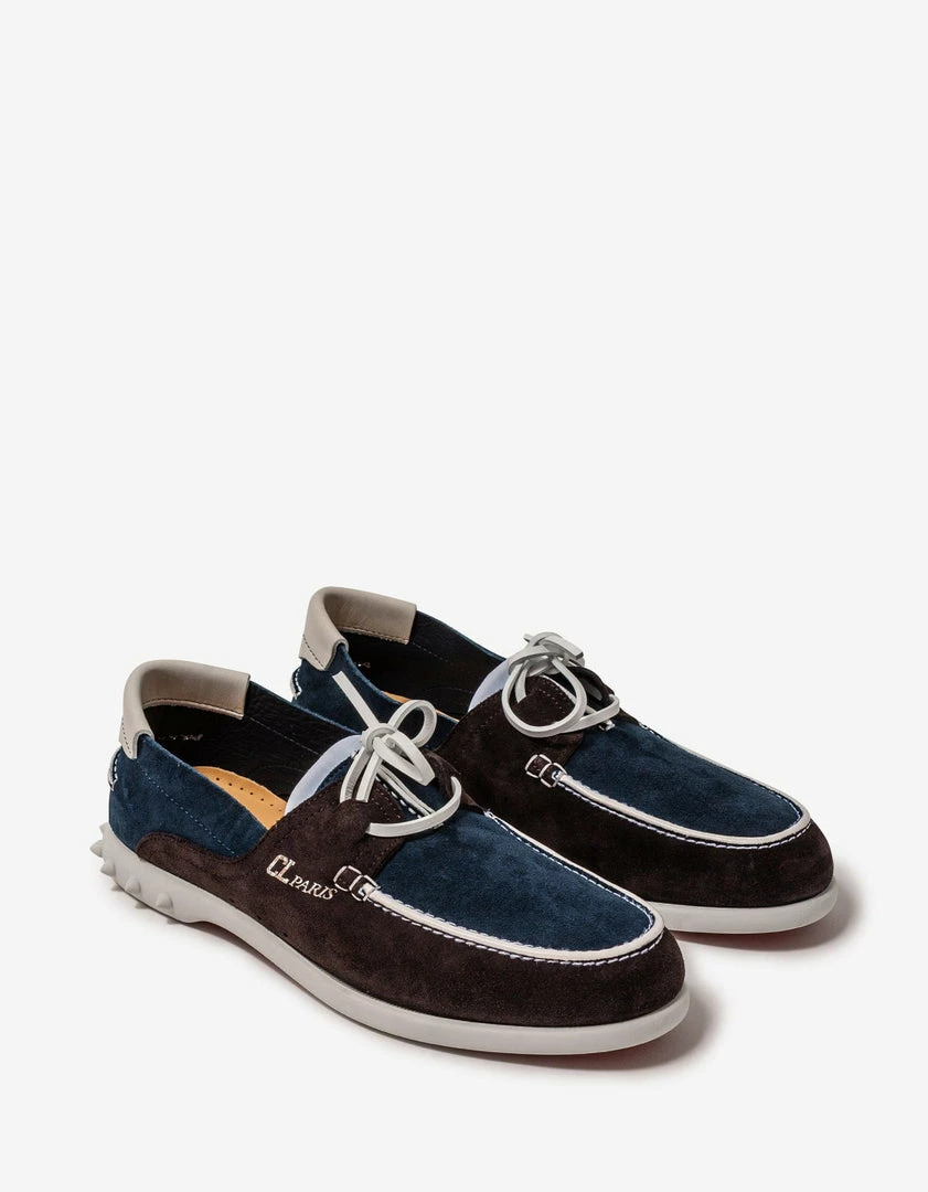 Outlet π Christian Louboutin Geromoc Navy & Brown Suede Leather Loafers π