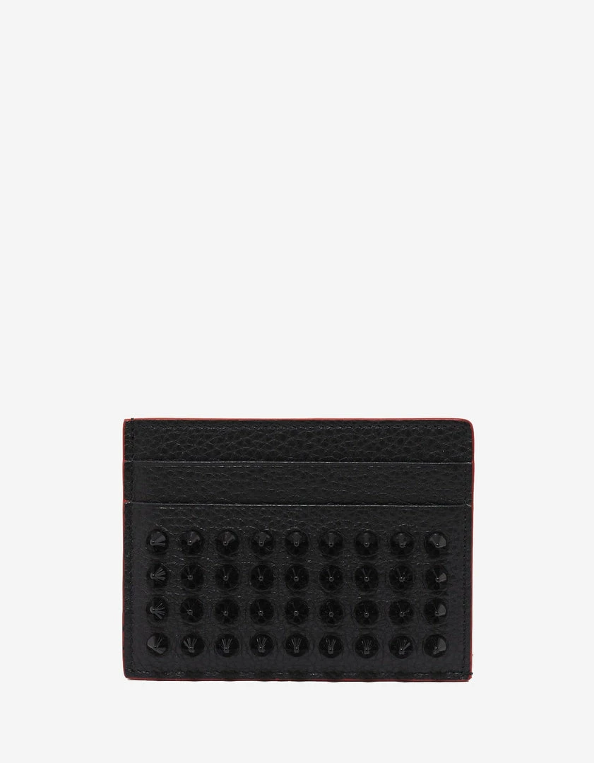 Best deal 🧨 Christian Louboutin Kios Black Grain Leather Spikes Card Holder 🥰