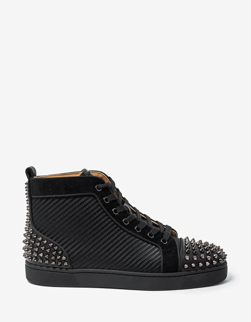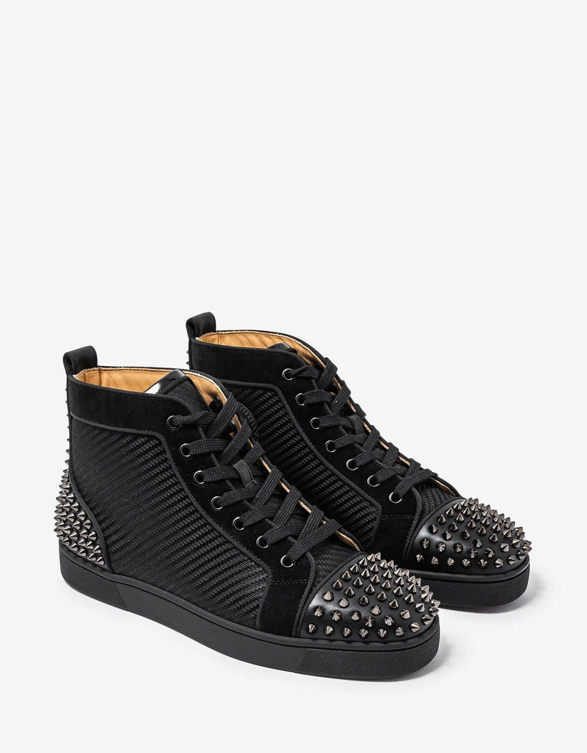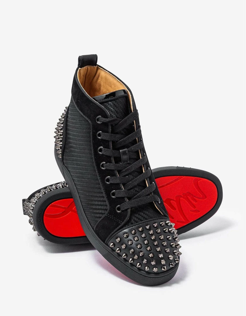 - Calf leather toe and heel panels with signature silver-tone spike embellishments