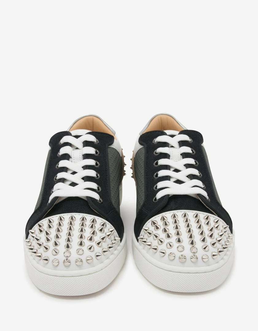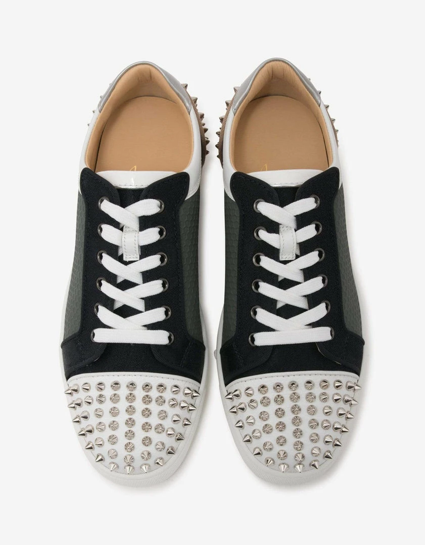 - Signature silver-toneย spike embellishments at the toe and heel counter