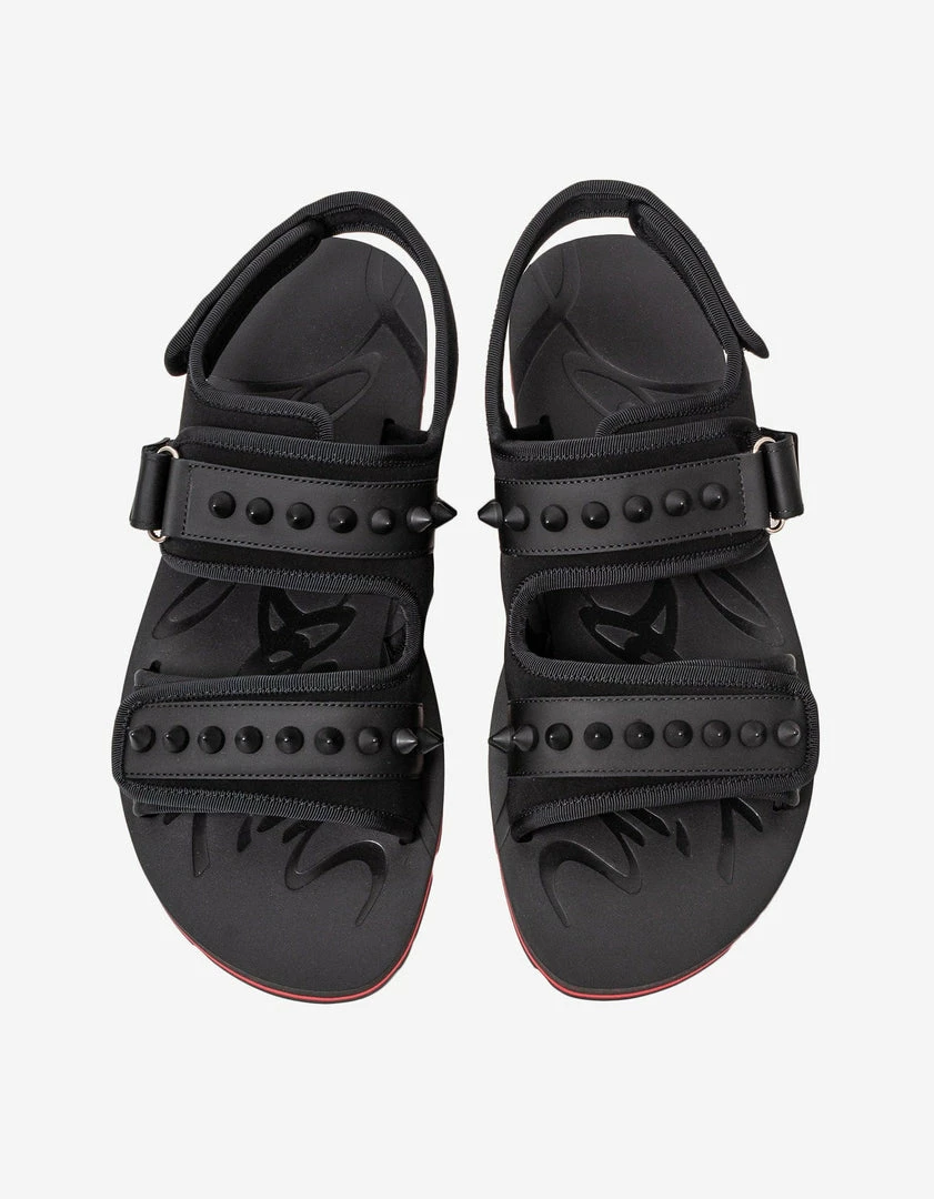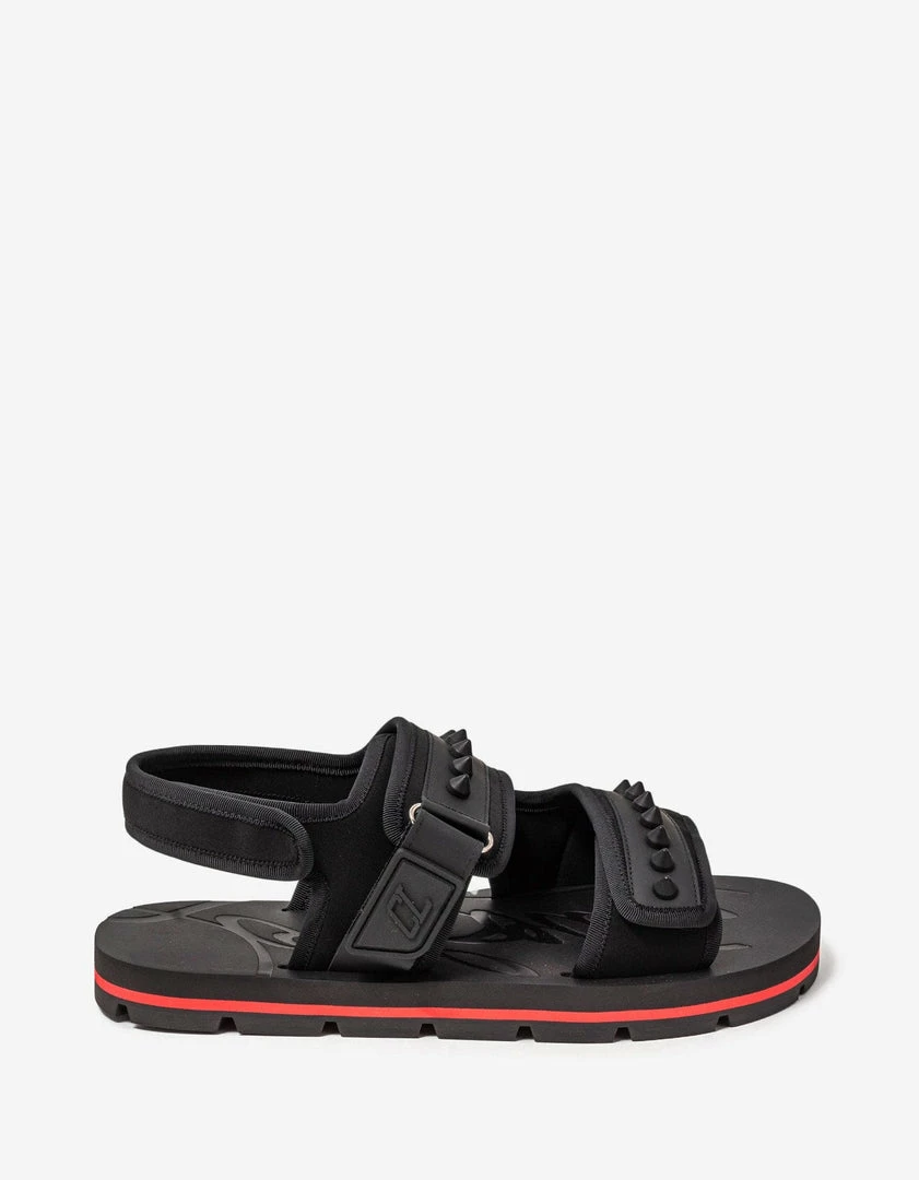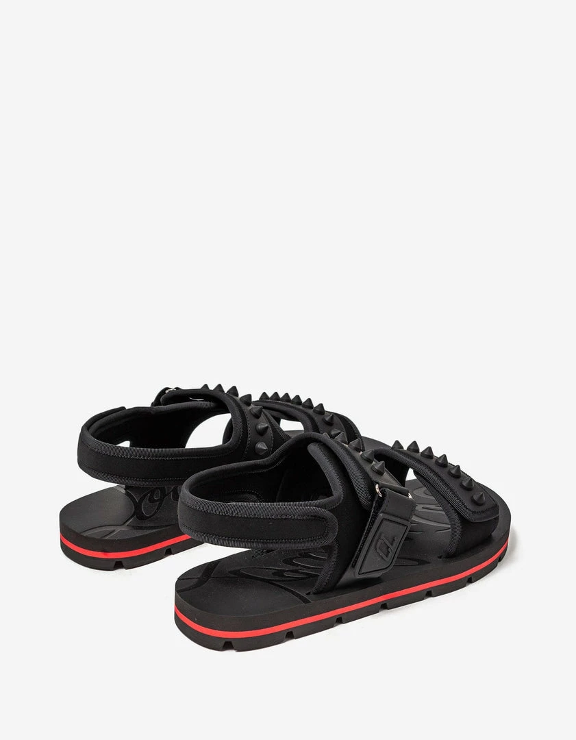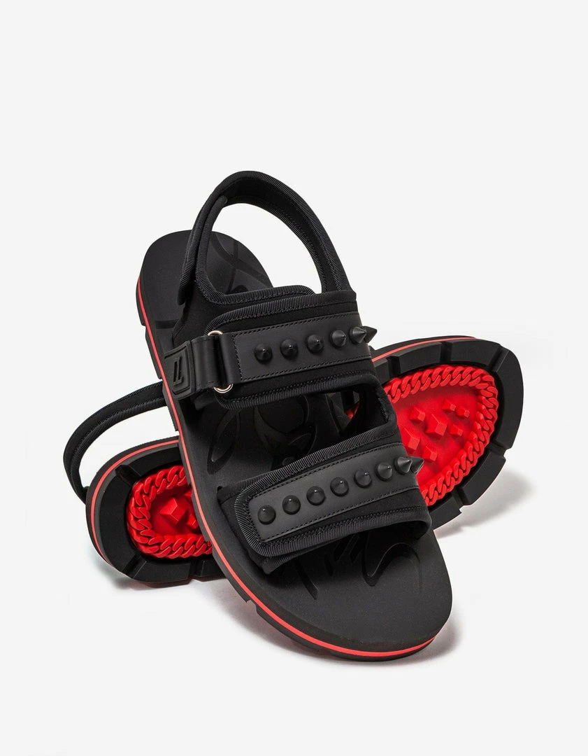 Displaying an array of iconic details, the Siwa mule takes its name from an Egyptian oasis, a source of inspiration for its creator. It features an iconic black rubber sole edged in Loubi red and encases the foot with strips of neoprene fastened with Velcro. It also showcases a CL patch and Maison Christian Louboutin signature black spikes.