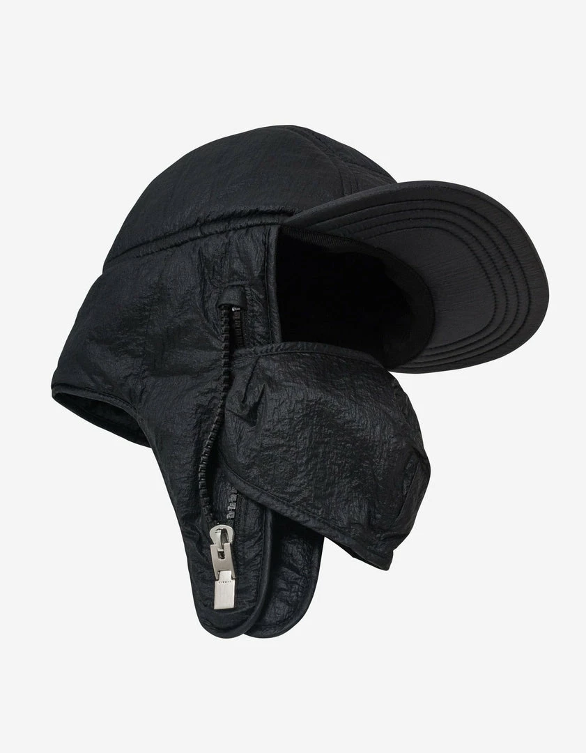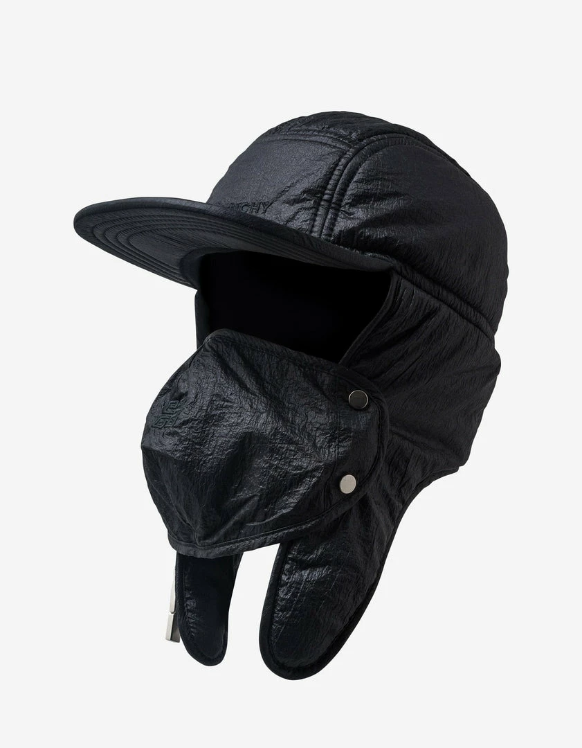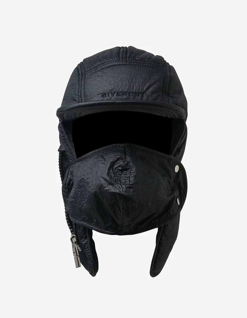 - Nylon cap with integrated earmuffs and mask