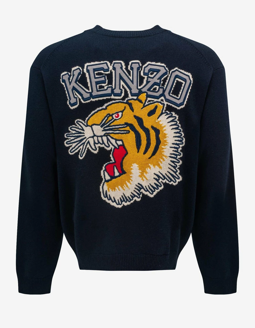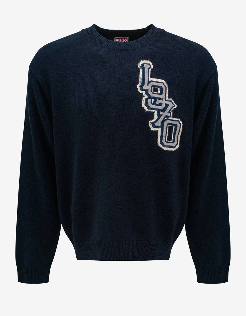 This wool jumper, a creation of the highest quality, is inspired by varsity style. The intarsia motif and embroidered details present the year KENZO was created and the brand icon.