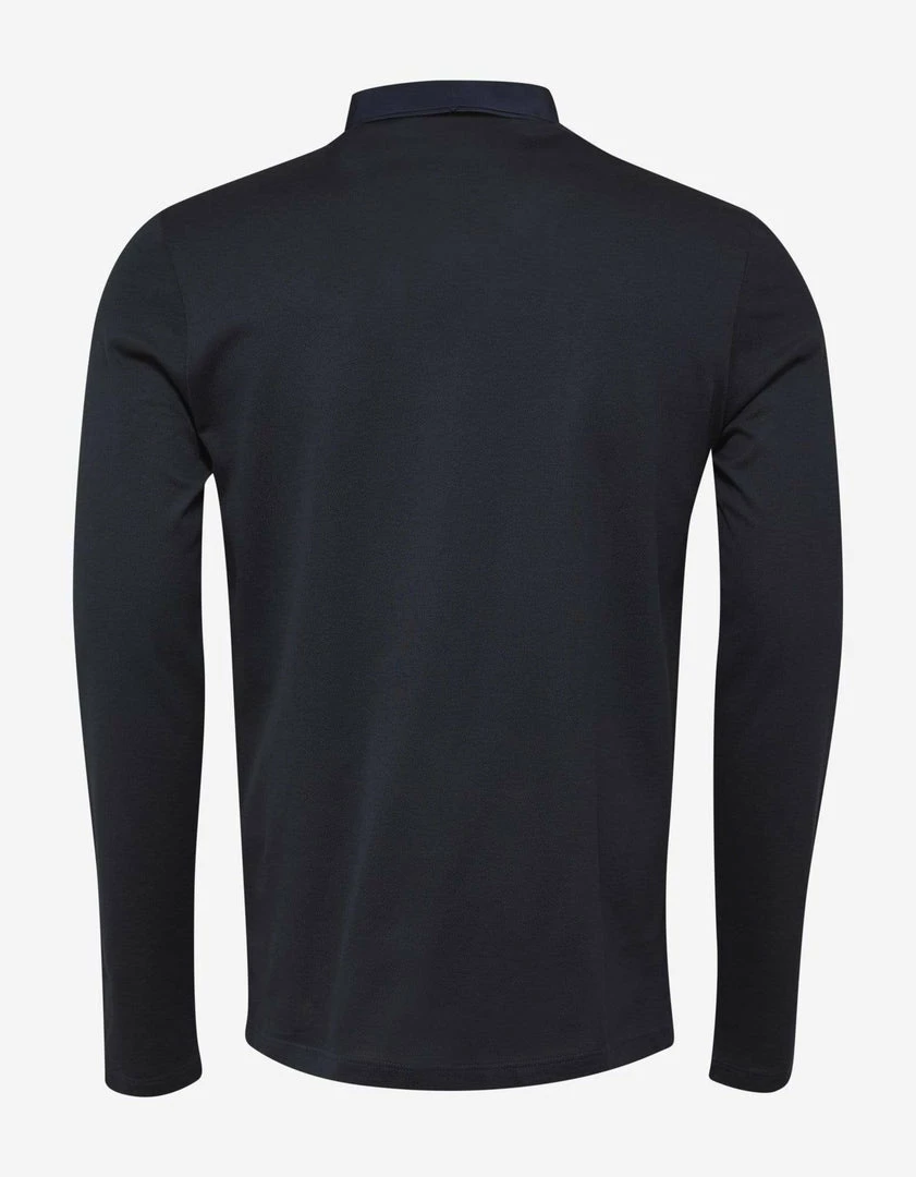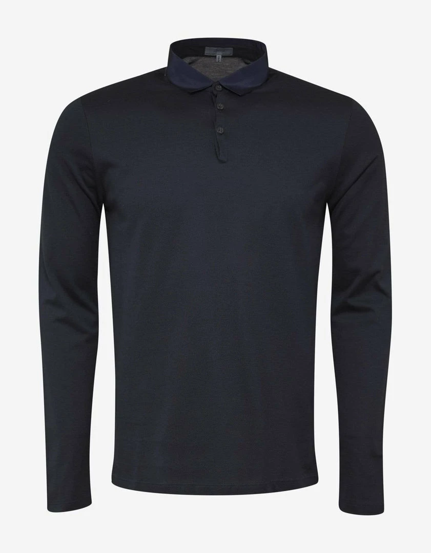 This navy blue long sleeve polo t-shirt from Lanvin is made from a pique cotton fabric and features a tonal grosgrain collar. Complete with three-button neck fastening and vents on either side of the hem.