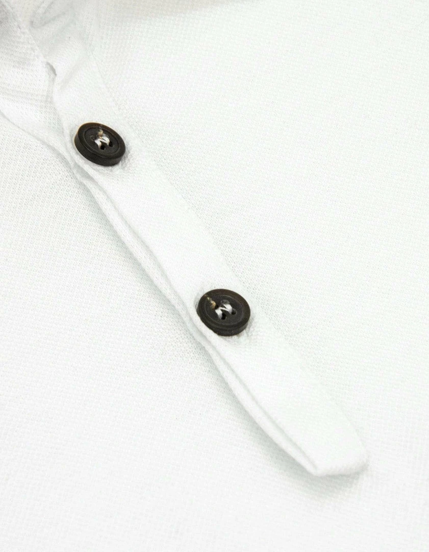 This white slim fit polo t-shirt from Lanvin is made from a pique cotton fabric and features an off-white grosgrain collar. Complete with three-button neck fastening and vents on either side of the hem.