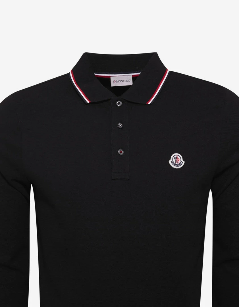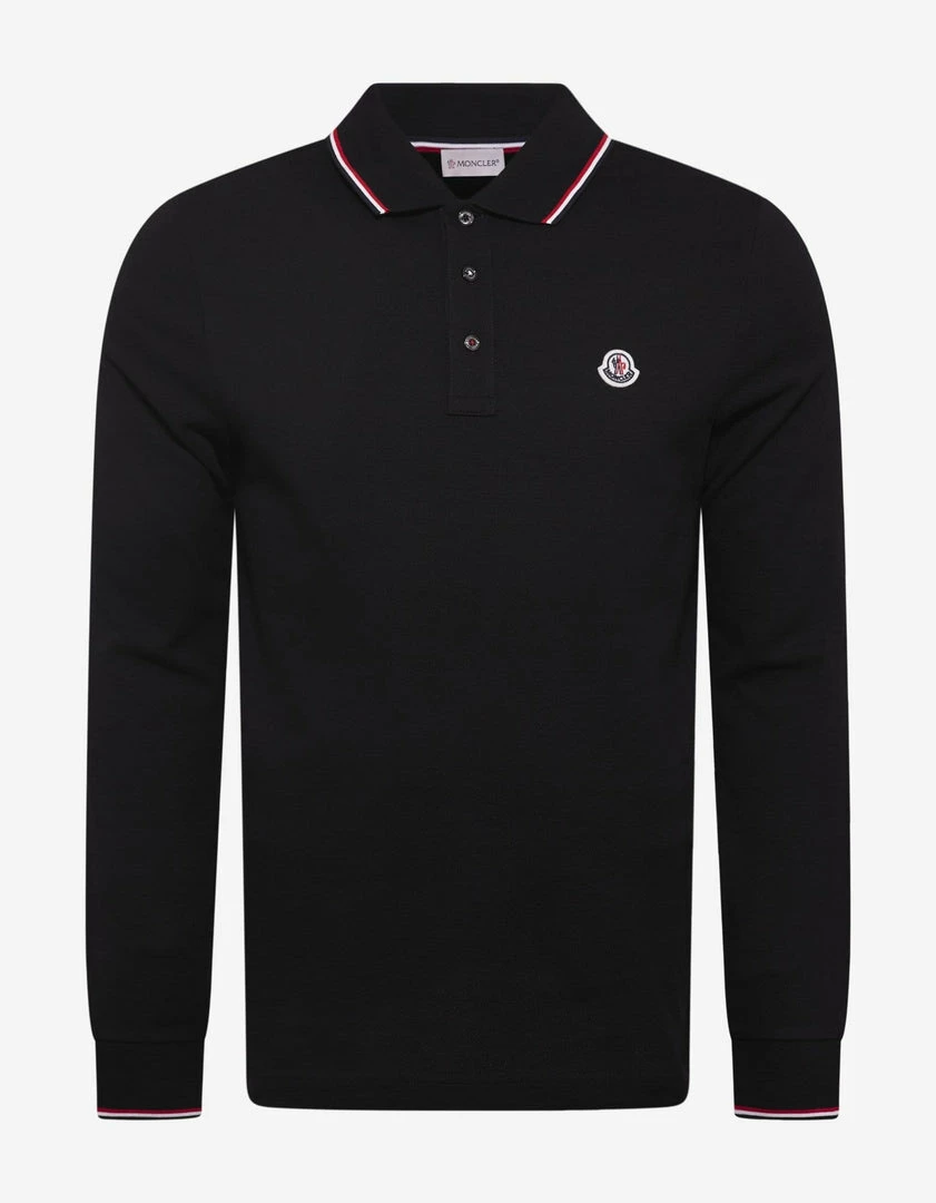Outlet ๐ Moncler Black Tricolour Trim Long Sleeve Polo T-Shirt Clothing ๐ฅฐ