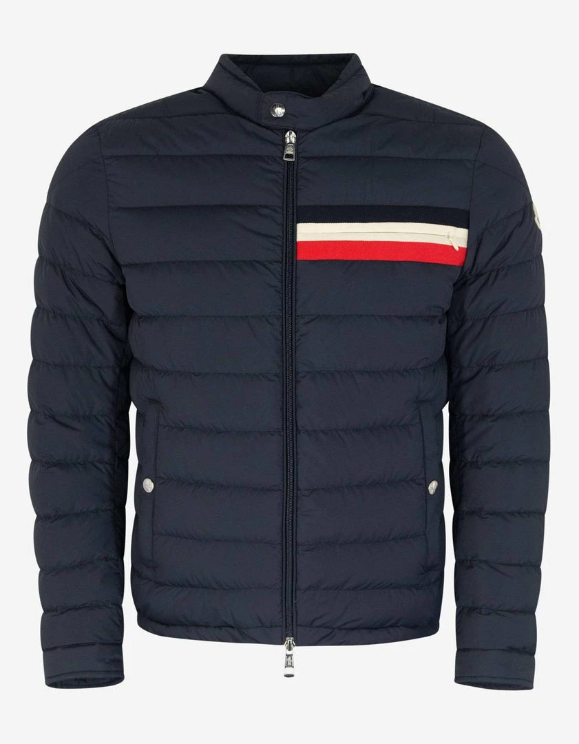For the Yeres jacket, it is all a matter of the details: Moncler showcases its highly recognizable signature touches like the logo hardware and tricolour insert on the chest.
