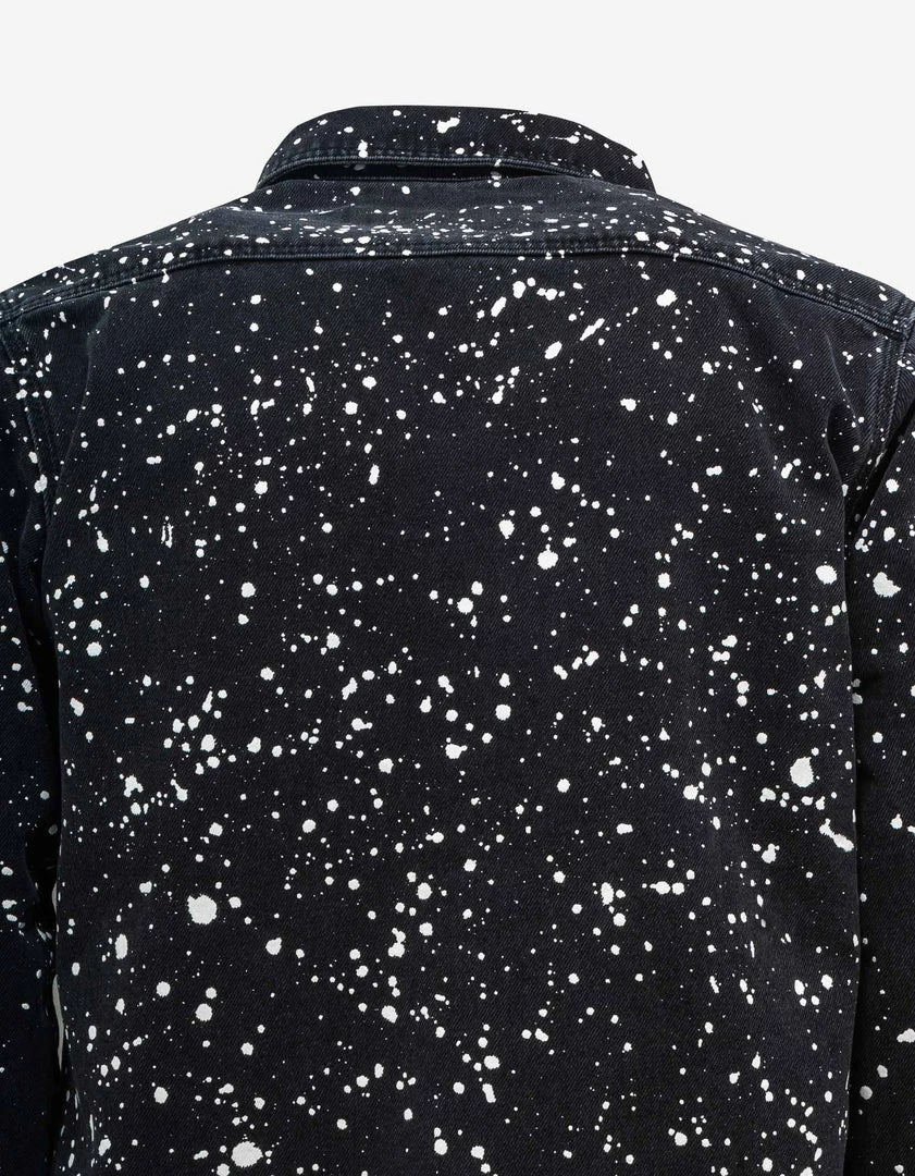 - White paint-splatter motif