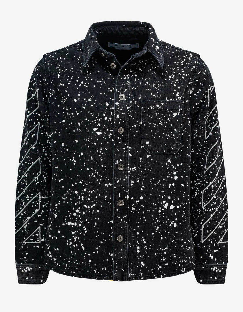Outlet 😀 Off-White C/o Virgil Abloh Clothing Black Diag Outline Paint Denim 👚 Shirt 🤩