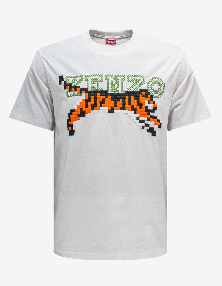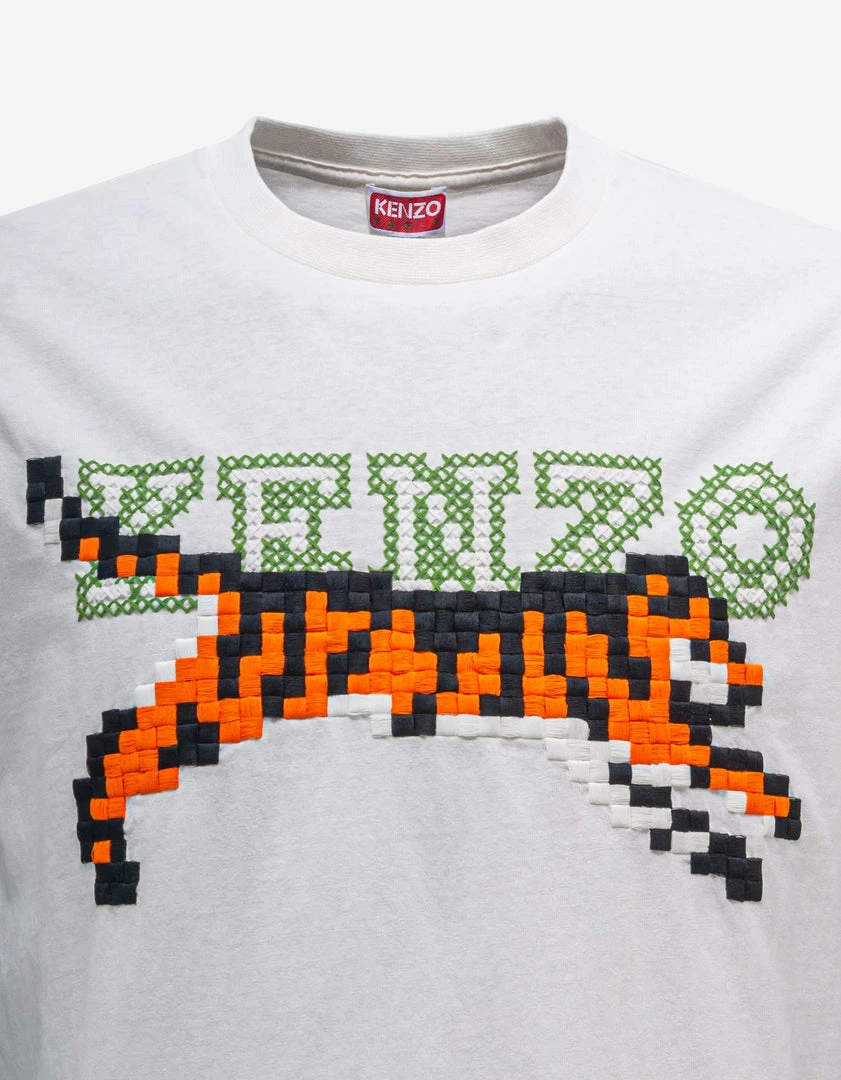 Nigo takes a leap into the past with this t-shirt and its 1980s computer graphics design. This piece reinterprets the iconic Tiger in pixels. It is comfortable to wear thanks to its oversized cut.