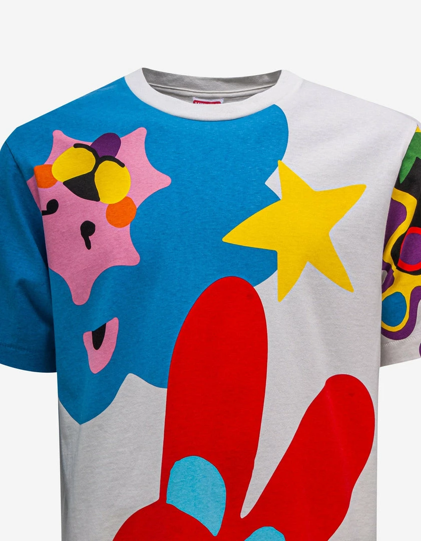 Nigo decided to bring the 1980s Japanese pop music scene back to life with this bold ‘KENZOO’ print. A mischievous lion and rabbit cover almost the entire front of this quirky, brightly coloured T-shirt. The geometric motif on the sleeve gives this design the perfect finishing touch.