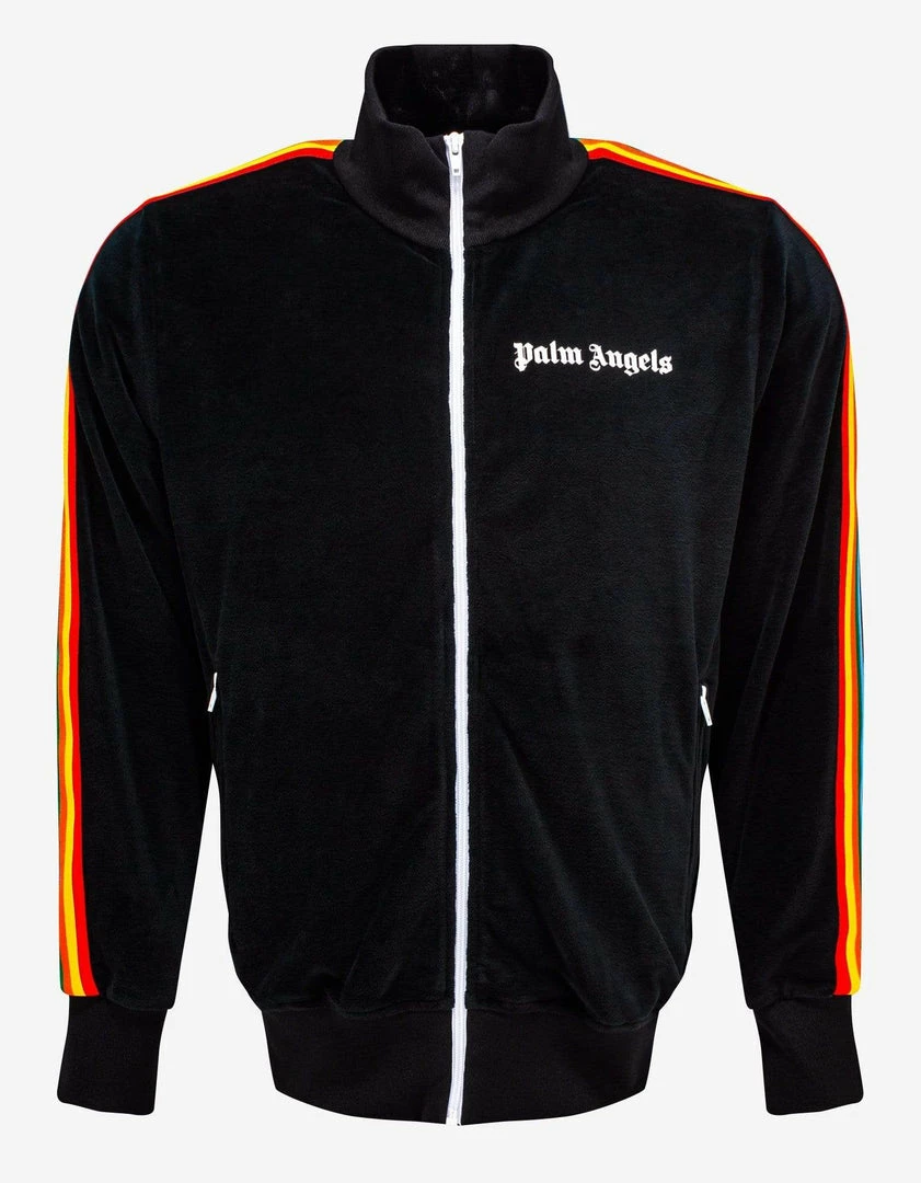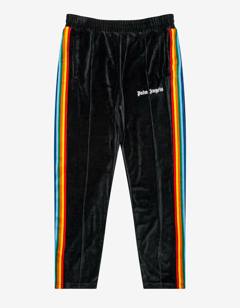 Promo ๐ Palm Angels Black Chenille Tracksuit With Rainbow Stripes ๐