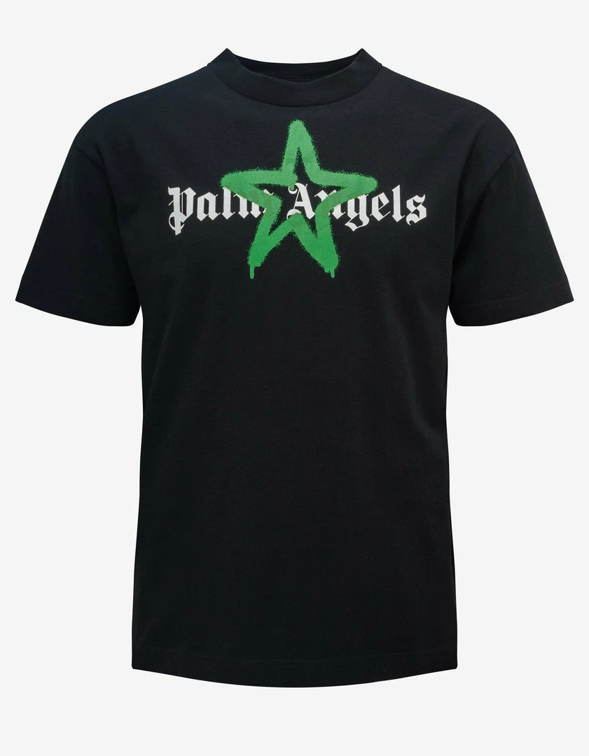 Budget β Palm Angels Black & Green Star Sprayed T-Shirt π