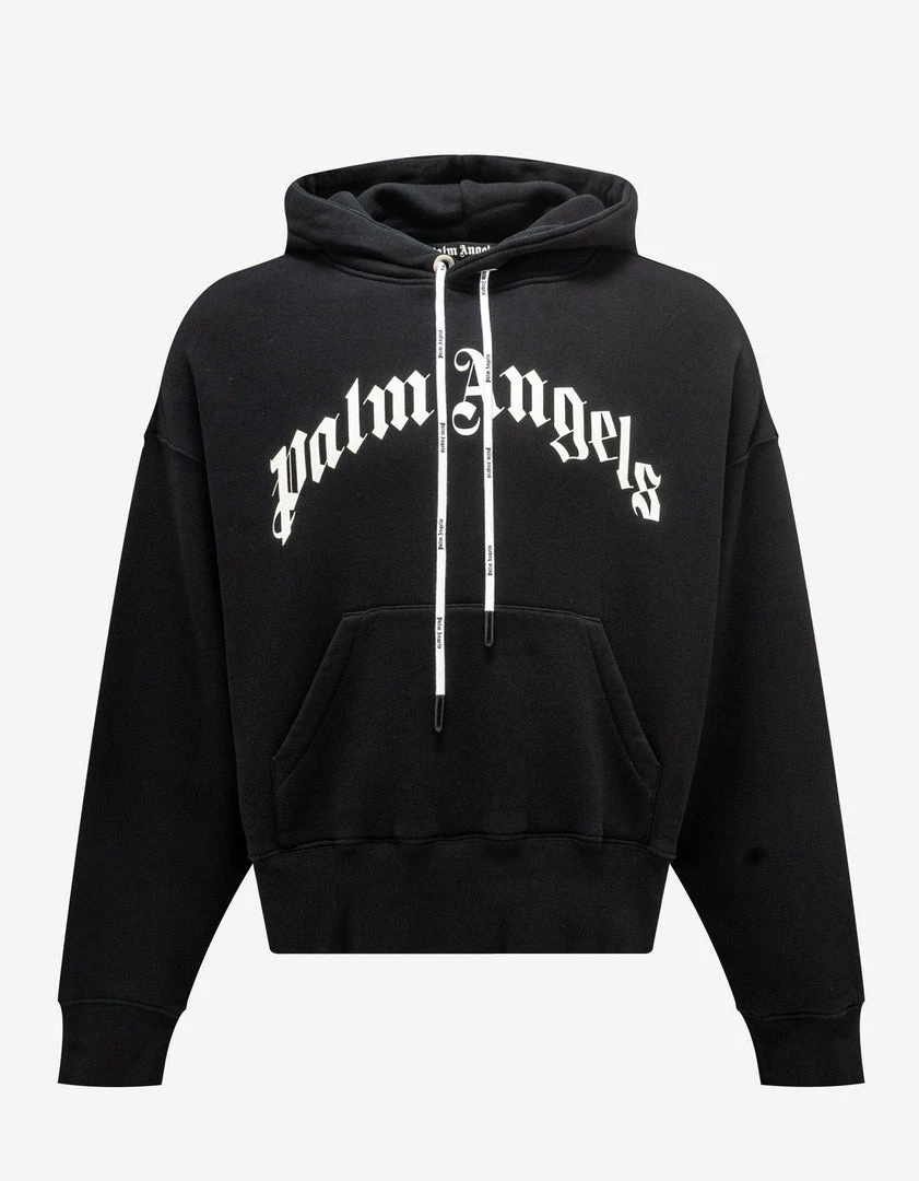 Top 10 ๐ฏ Palm Angels Clothing Black Curved Logo Hoodie ๐ฅฐ
