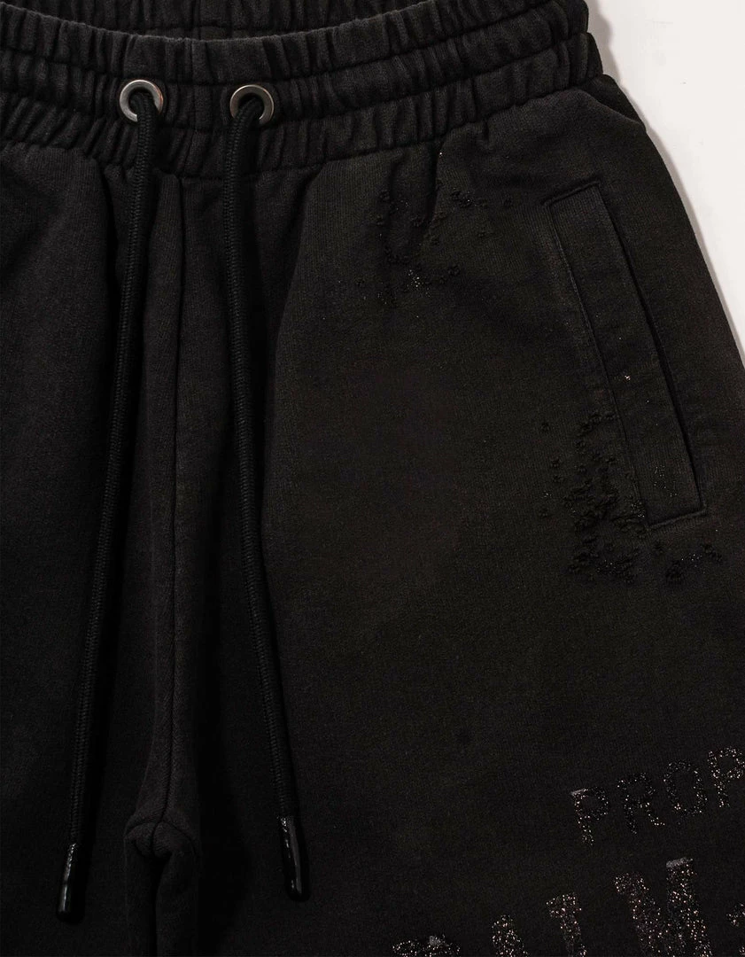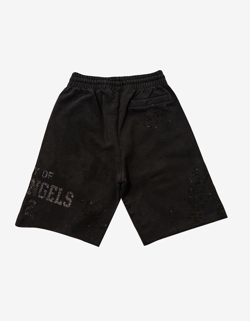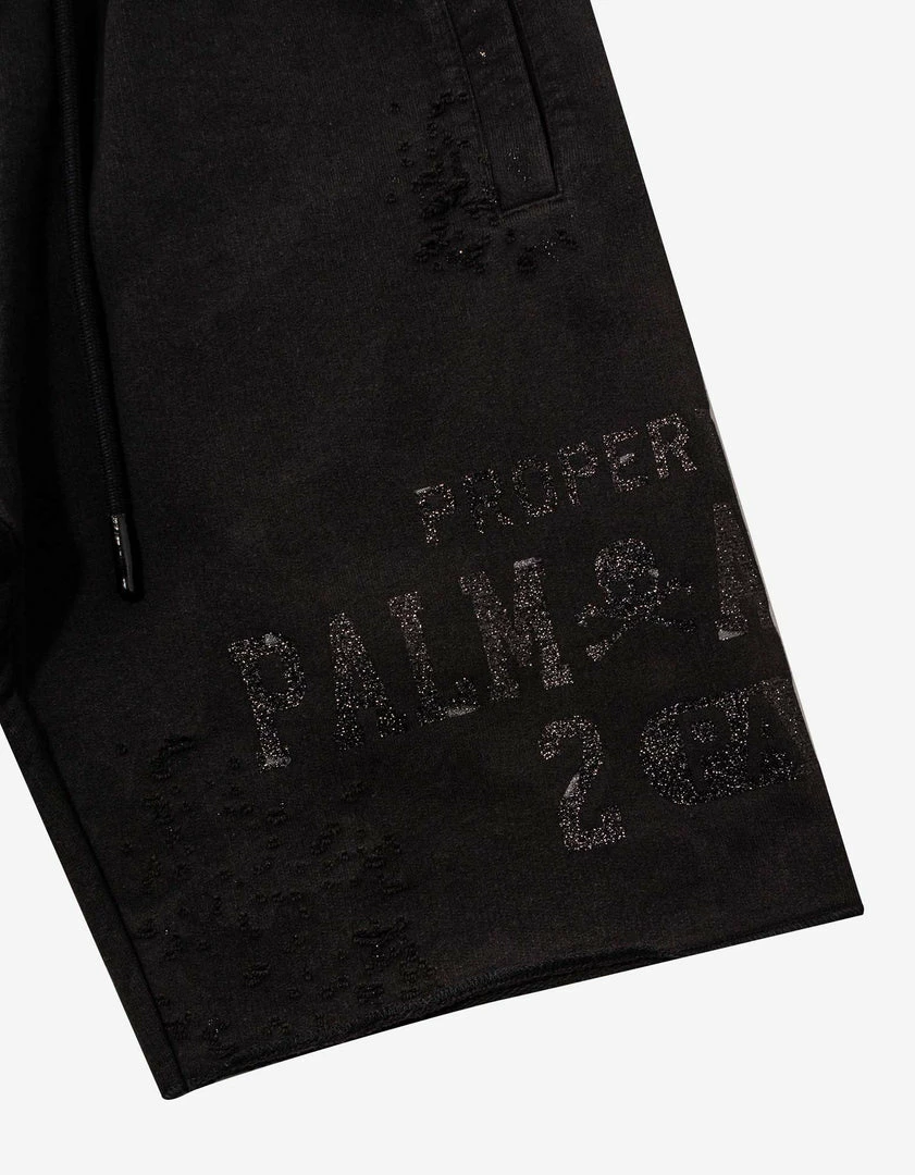 Brand new π Palm Angels Clothing Black Lurex Logo Distressed Sweat Shorts β