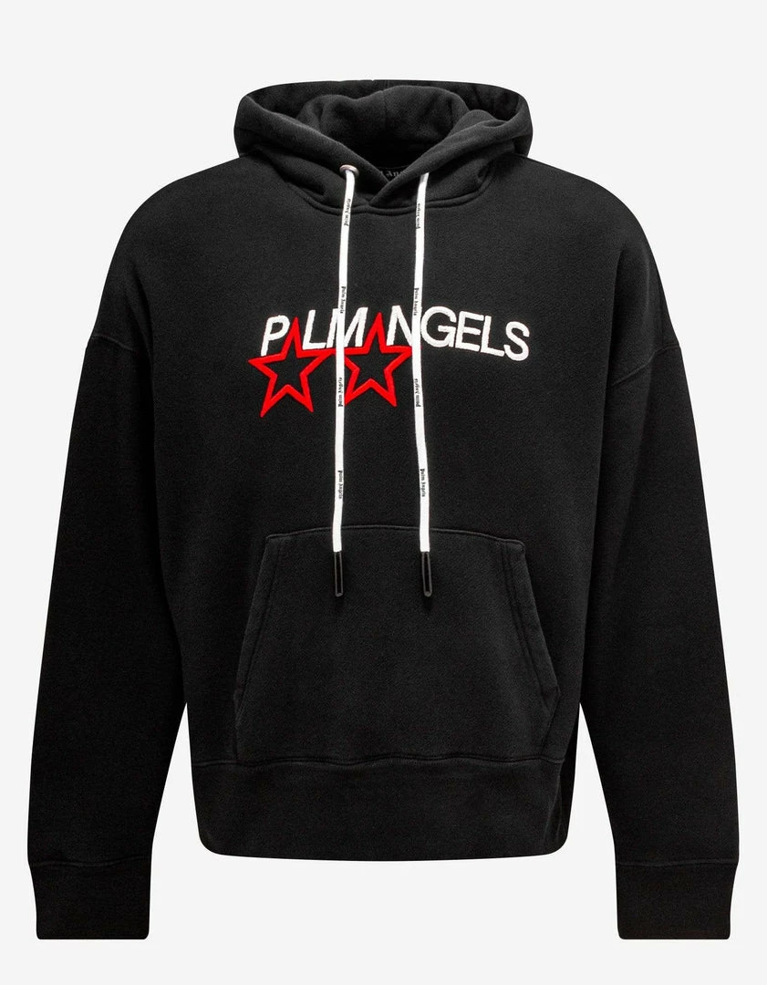New 👏 Palm Angels Clothing Black Racing Star Embroidery Hoodie ⭐