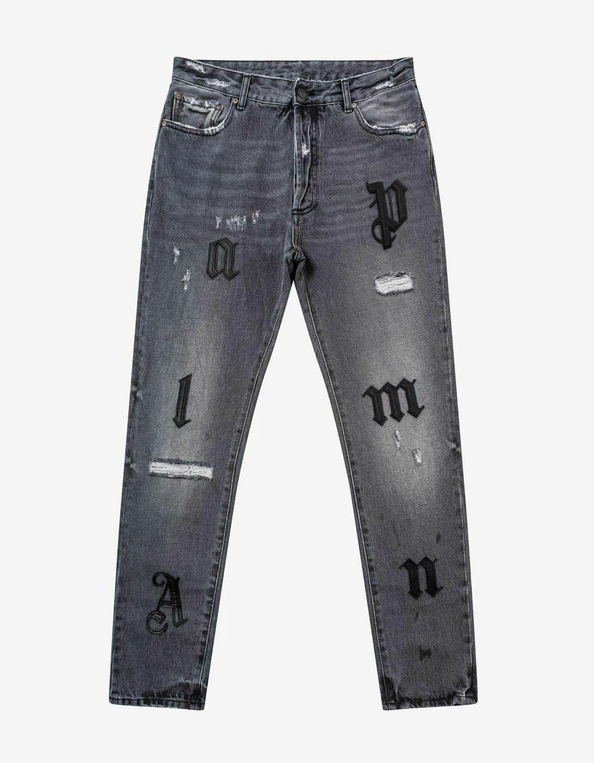 Best deal π Palm Angels Clothing Grey Logo Patch Classic π Jeans β