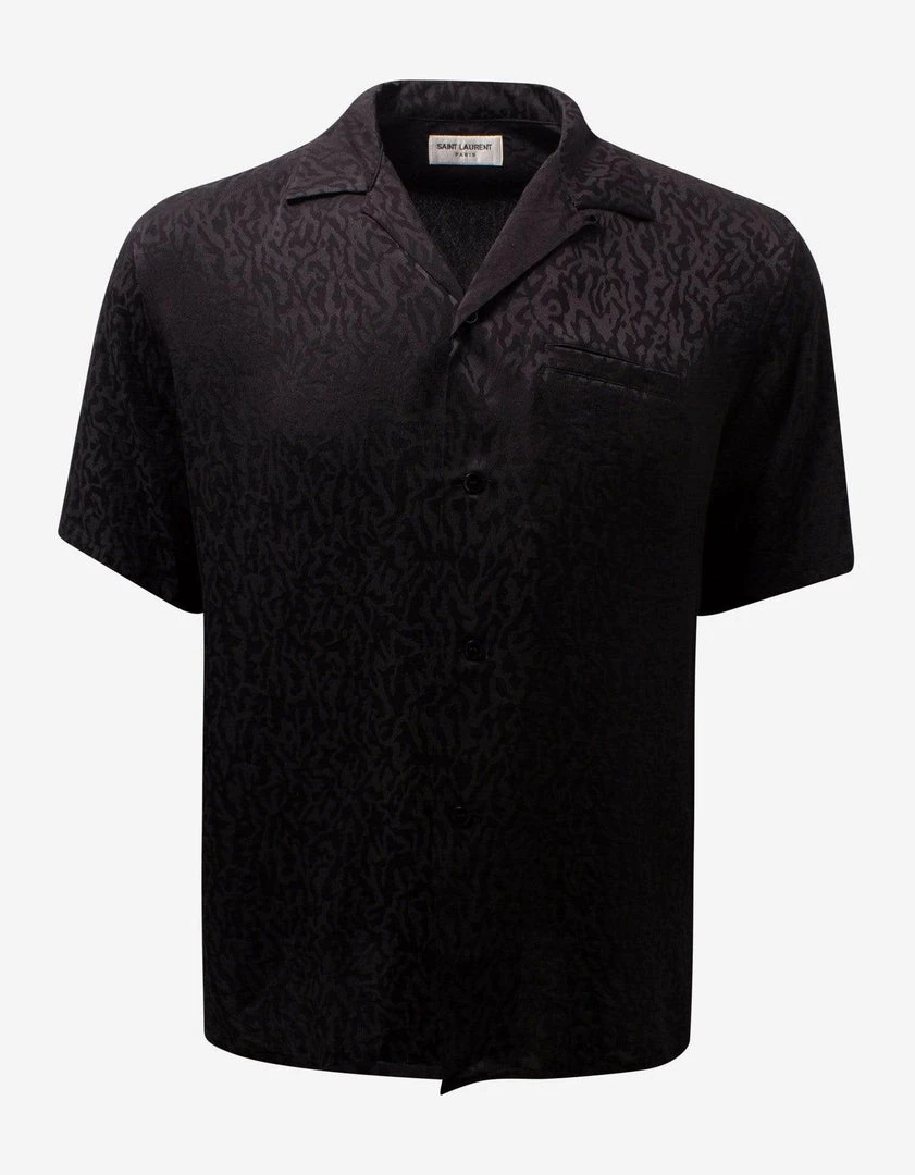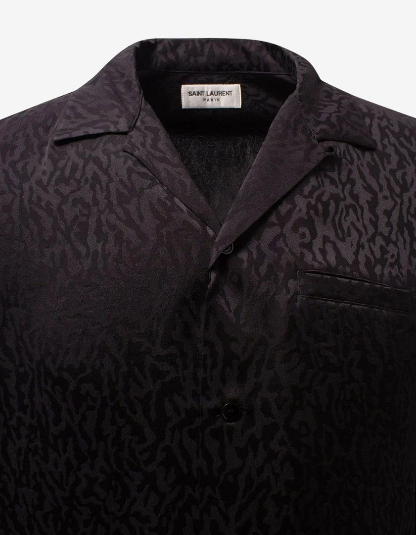 Best Sale ❤️ Saint Laurent Clothing Black Camo Jacquard Silk 👕 Shirt ✔️