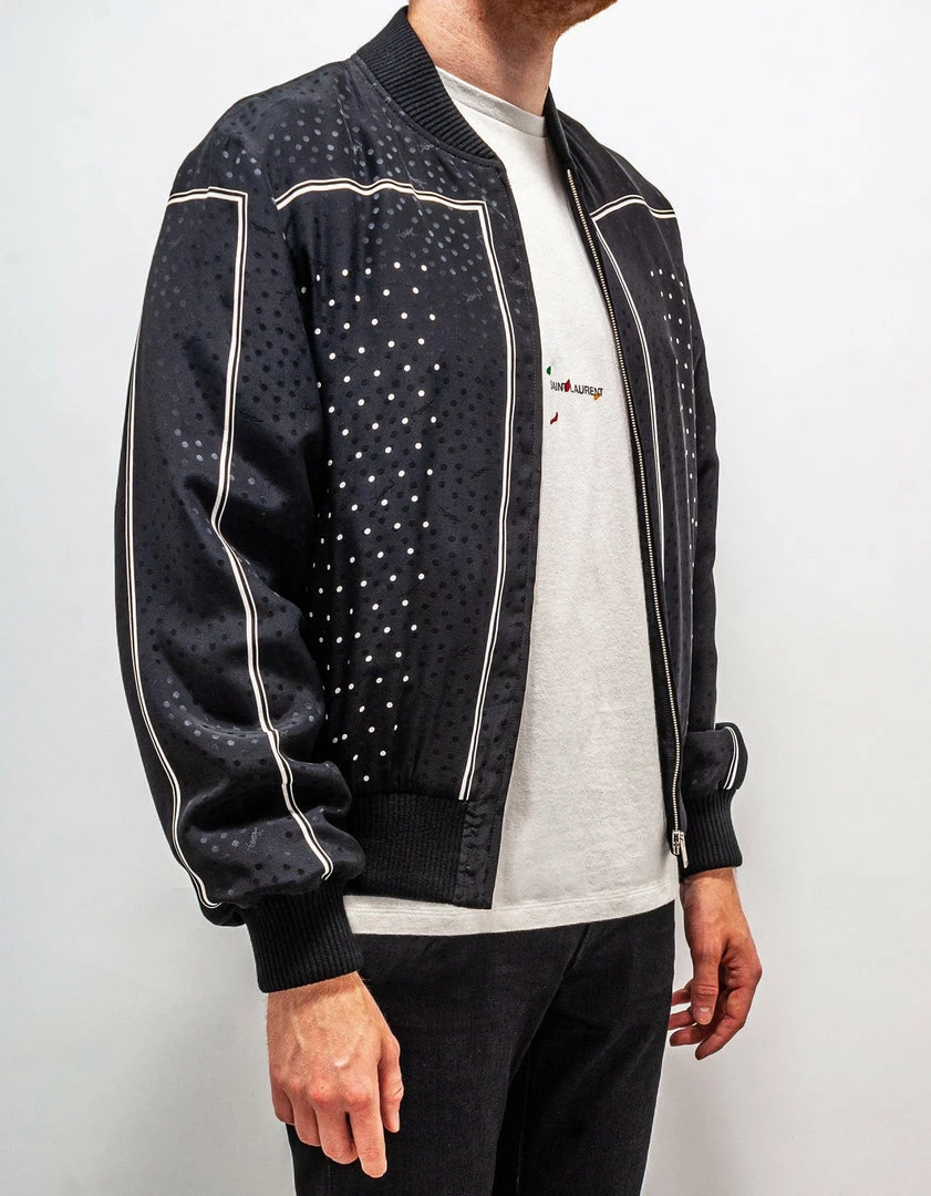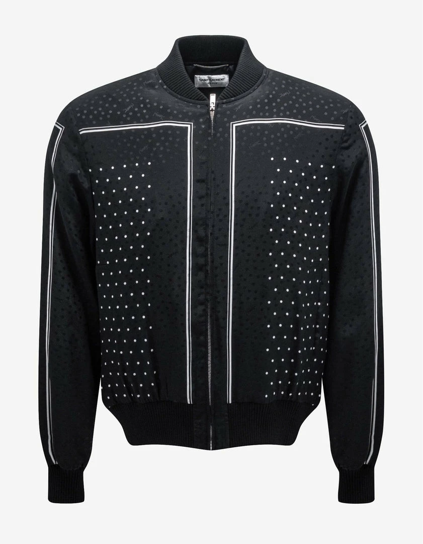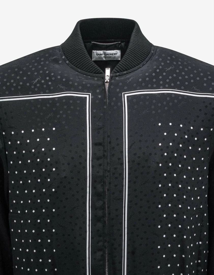Cheapest 🥰 Saint Laurent Clothing Black Dot Print Silk Teddy Jacket 🛒