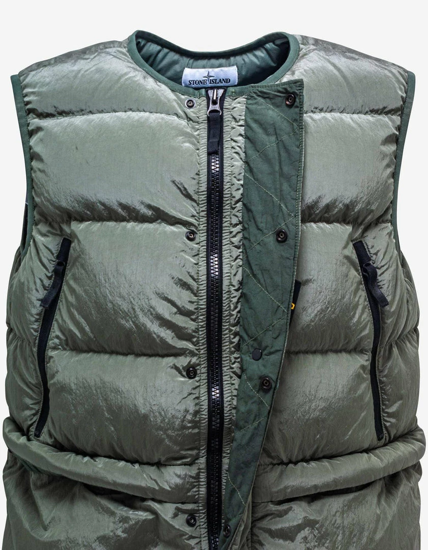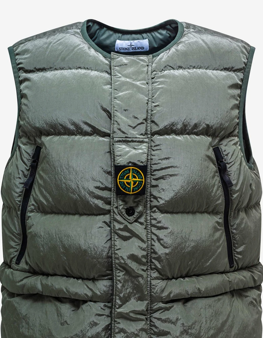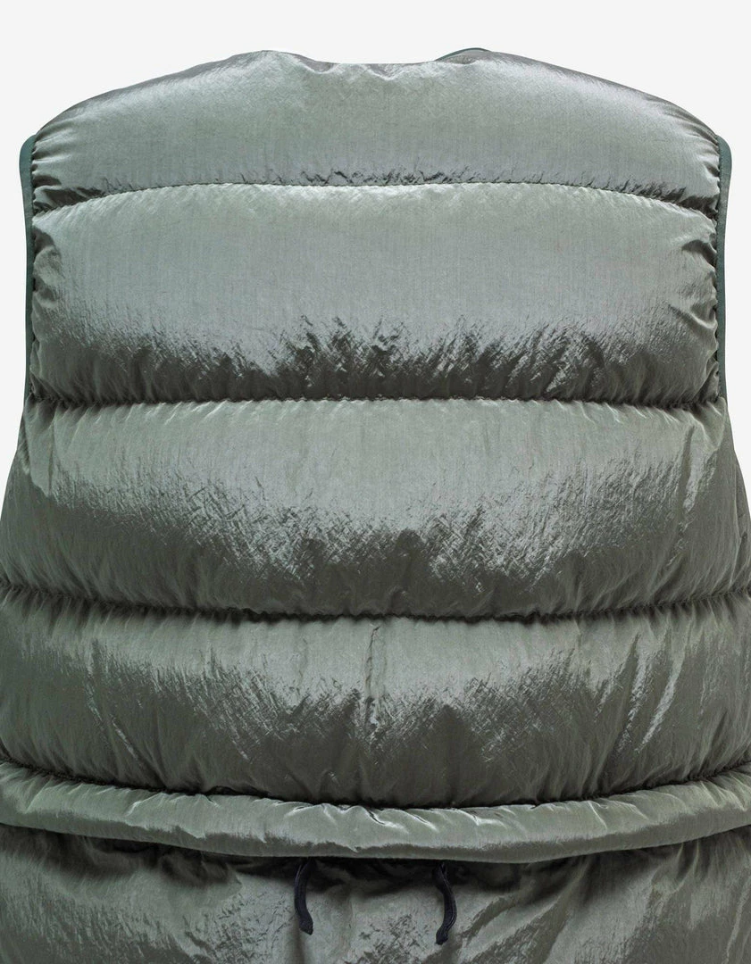 - Down gilet: Elasticated tape edging the entire gilet