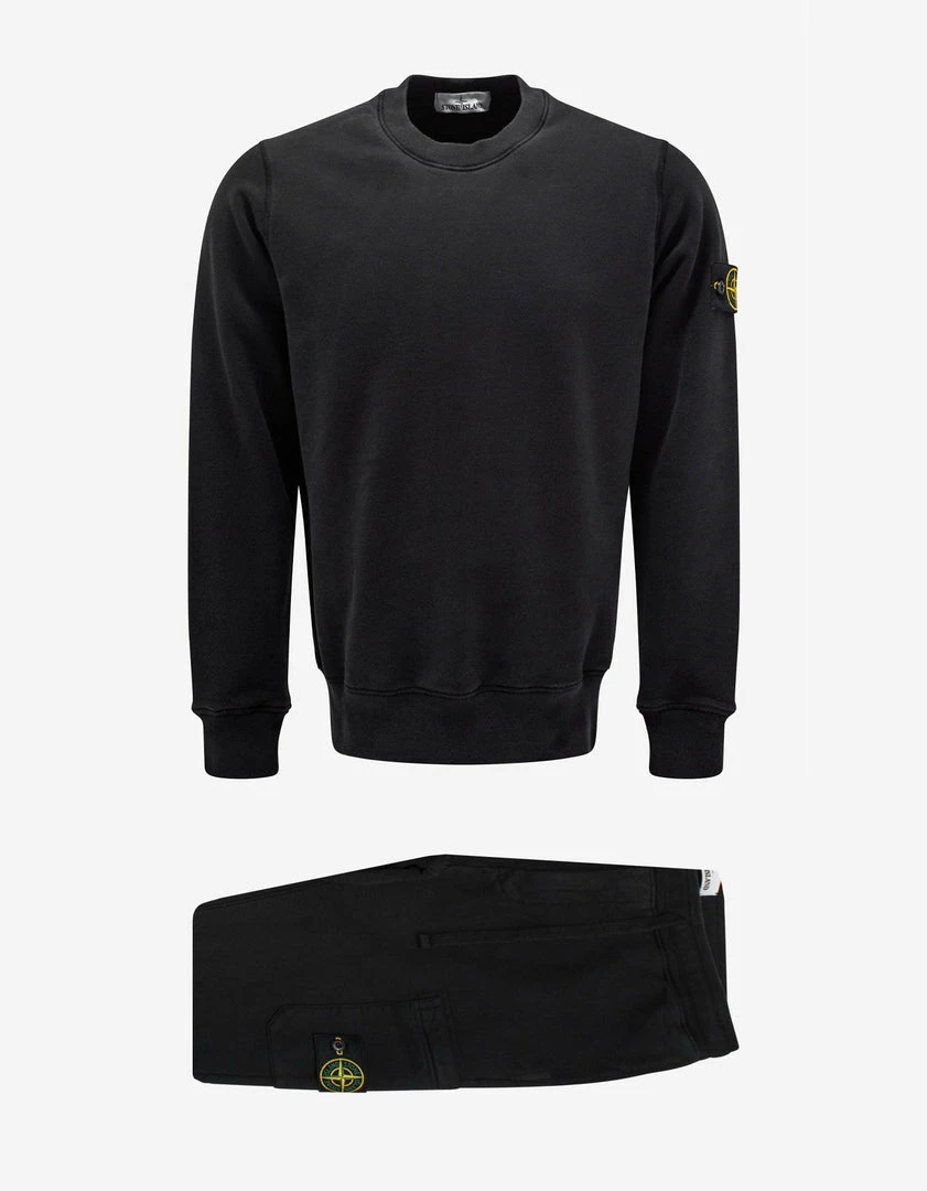 Outlet π₯° Stone Island Clothing Black Compass Badge Crew Neck Tracksuit π€©