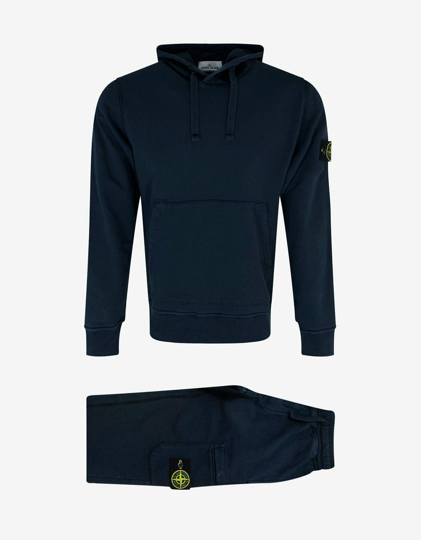 Flash Sale ✨ Stone Island Clothing Navy Blue Compass Logo Hooded Tracksuit ✔️