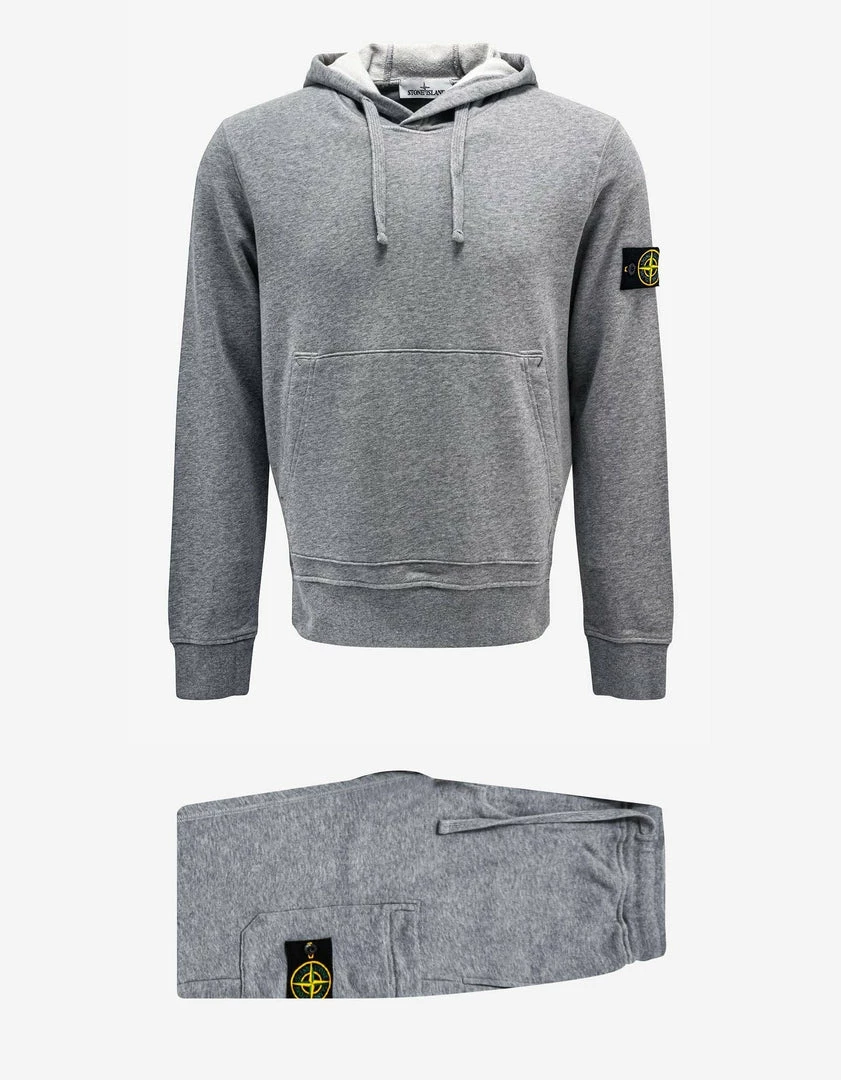 Hot Sale π₯° Stone Island Dust Grey Compass Logo Hooded Tracksuit π₯