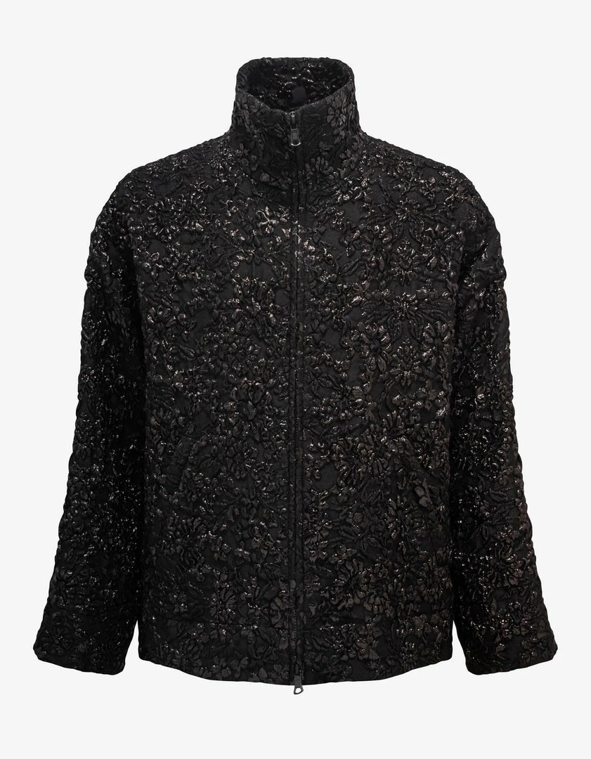 - Nylon brocade jacket with all-over floral lurex jacquard