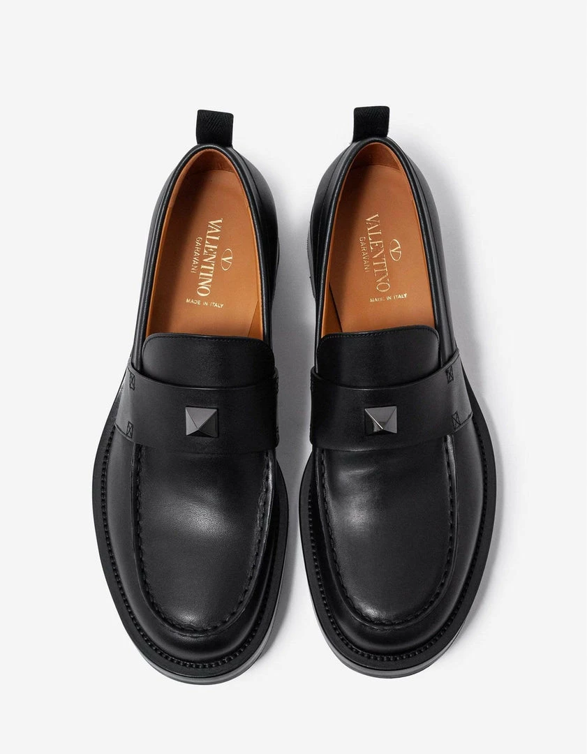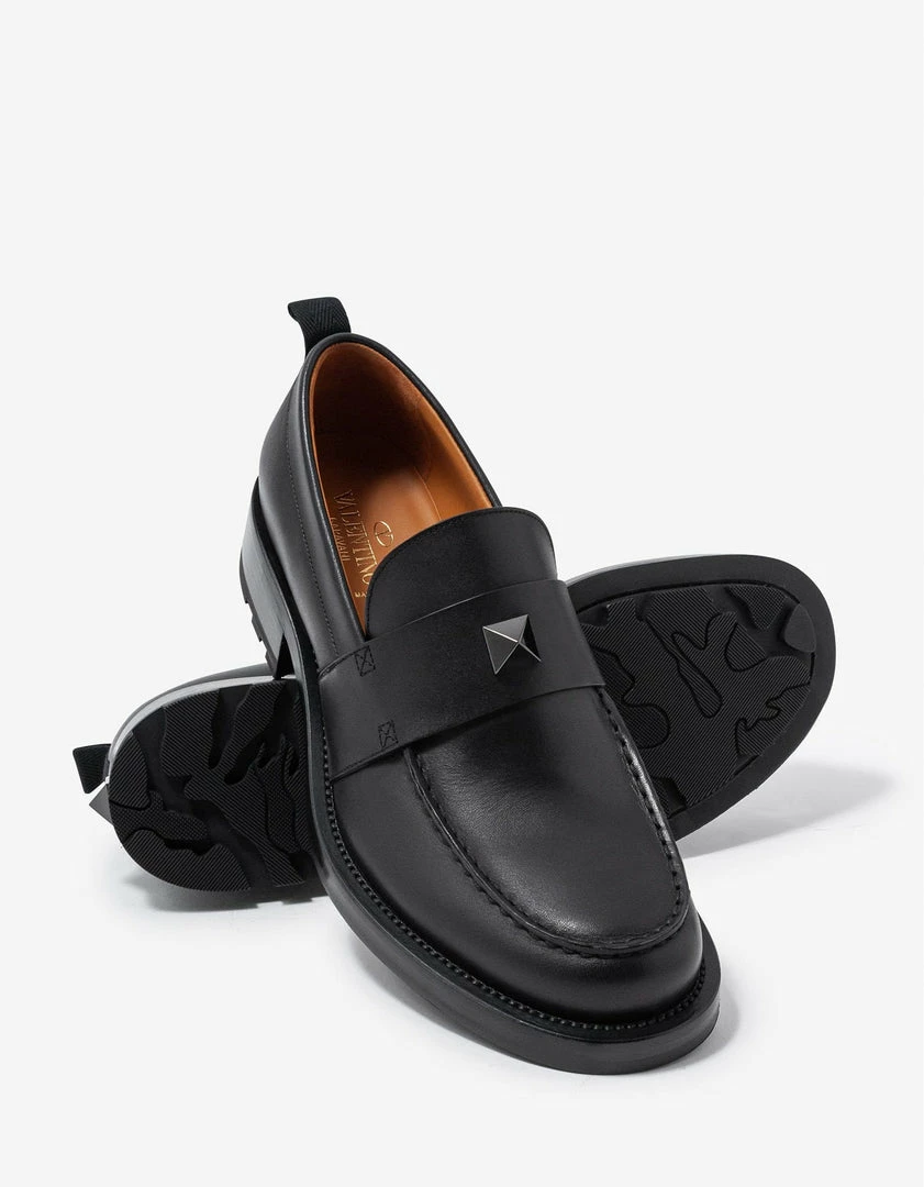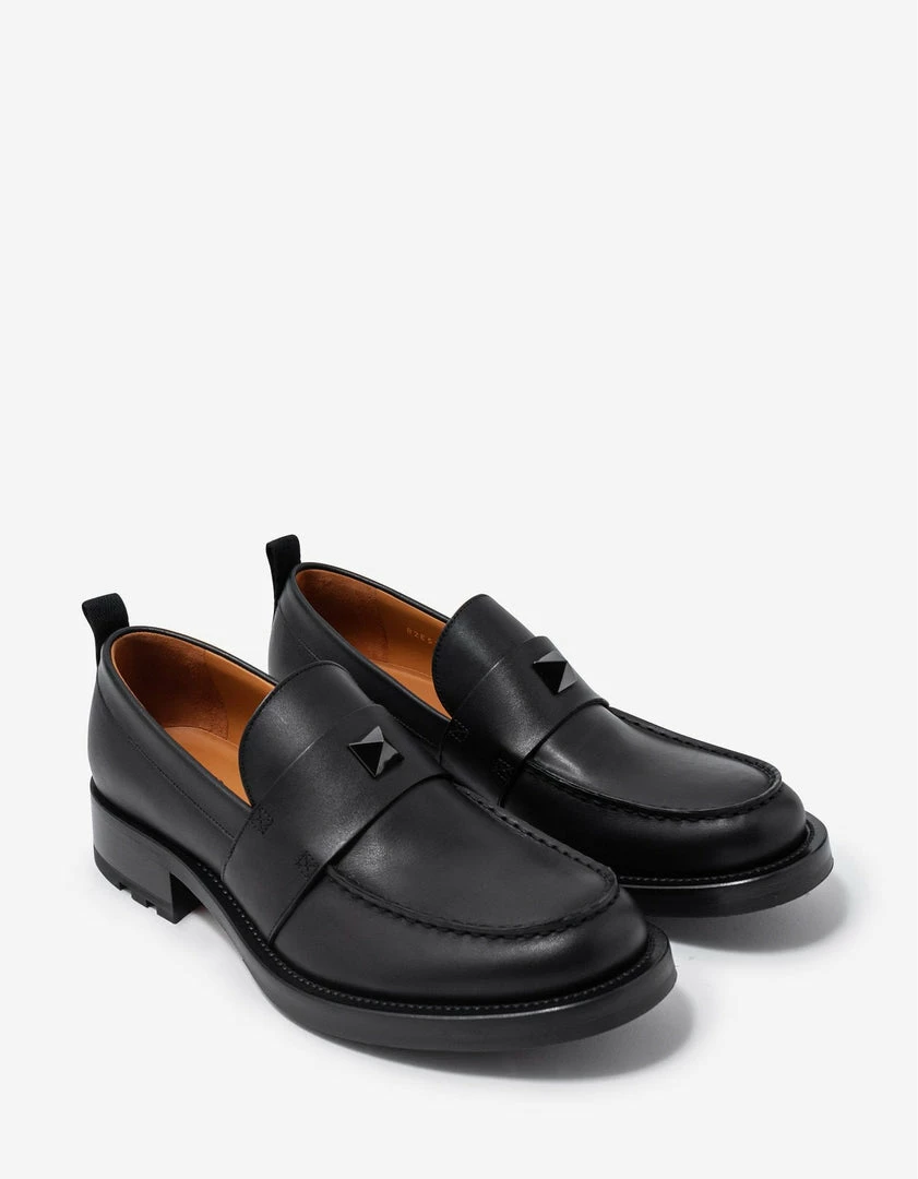 Cheap 🧨 Valentino Garavani Black Roman Stud Leather Loafers 🤩