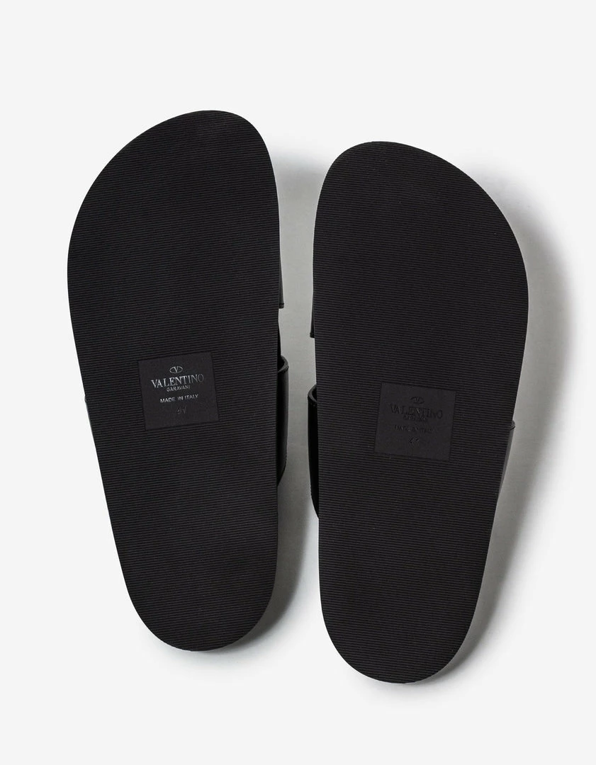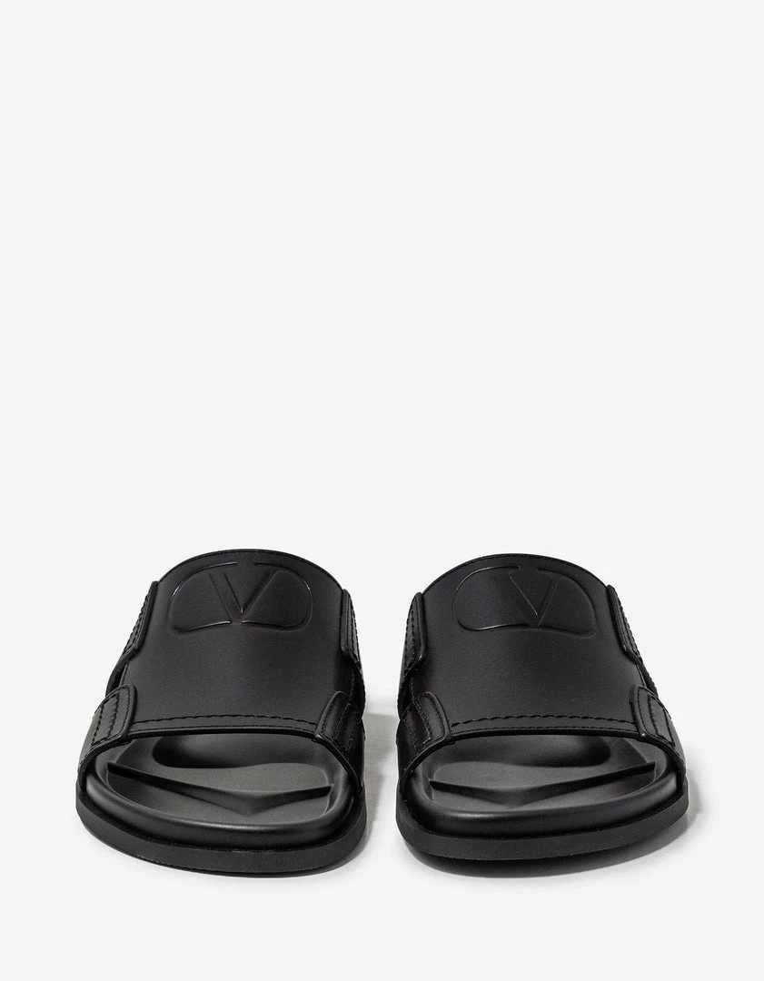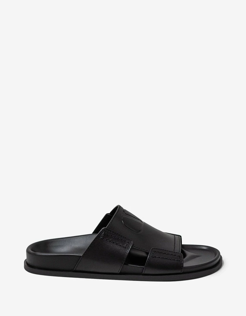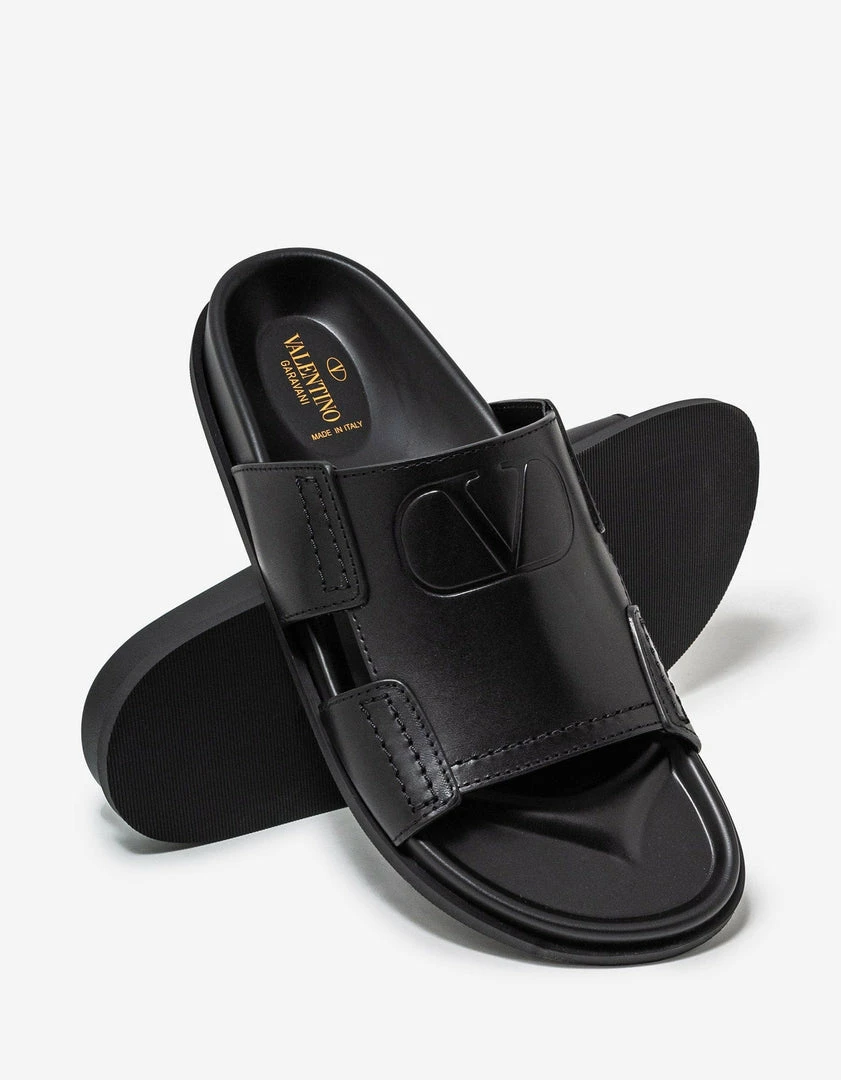 Best Sale 𧨠Valentino Garavani Black VLogo Leather π©΄ Sandals π₯°