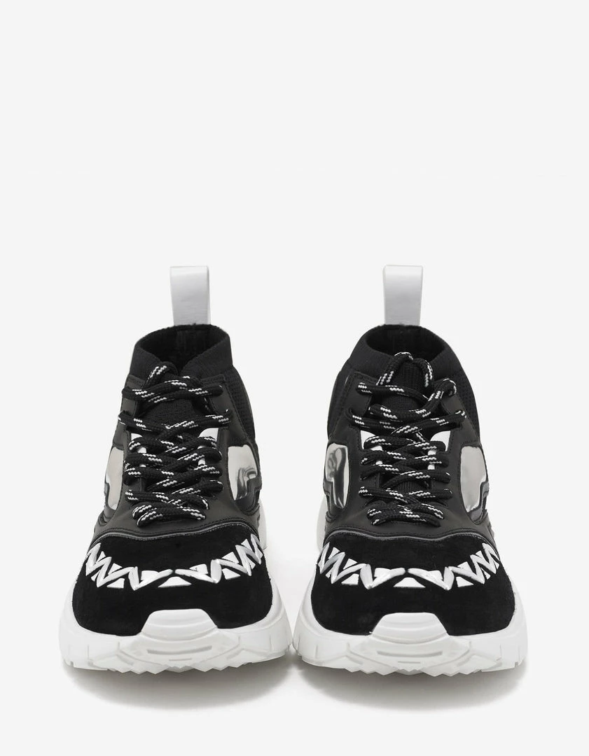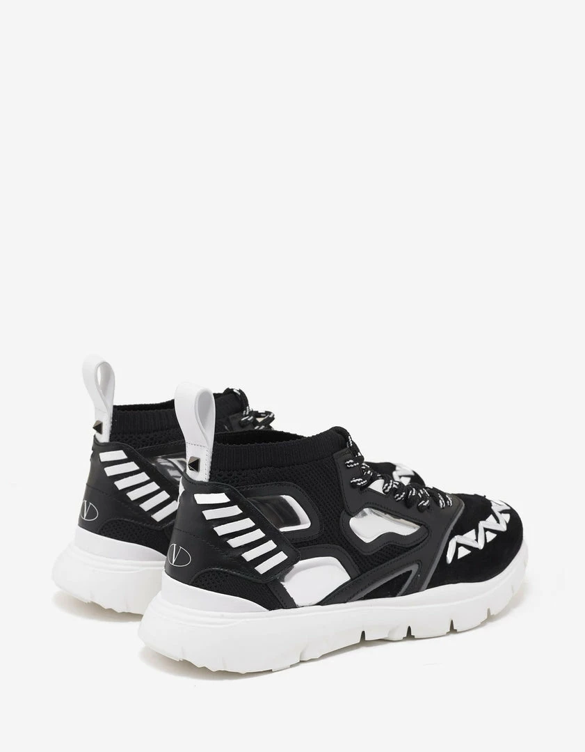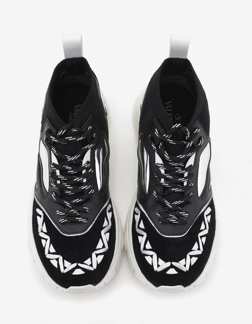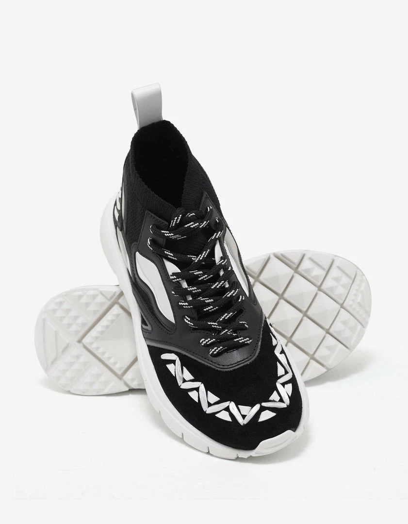 - Black Stretch-knit mesh upper with tonal calf leather highlights and suede panels