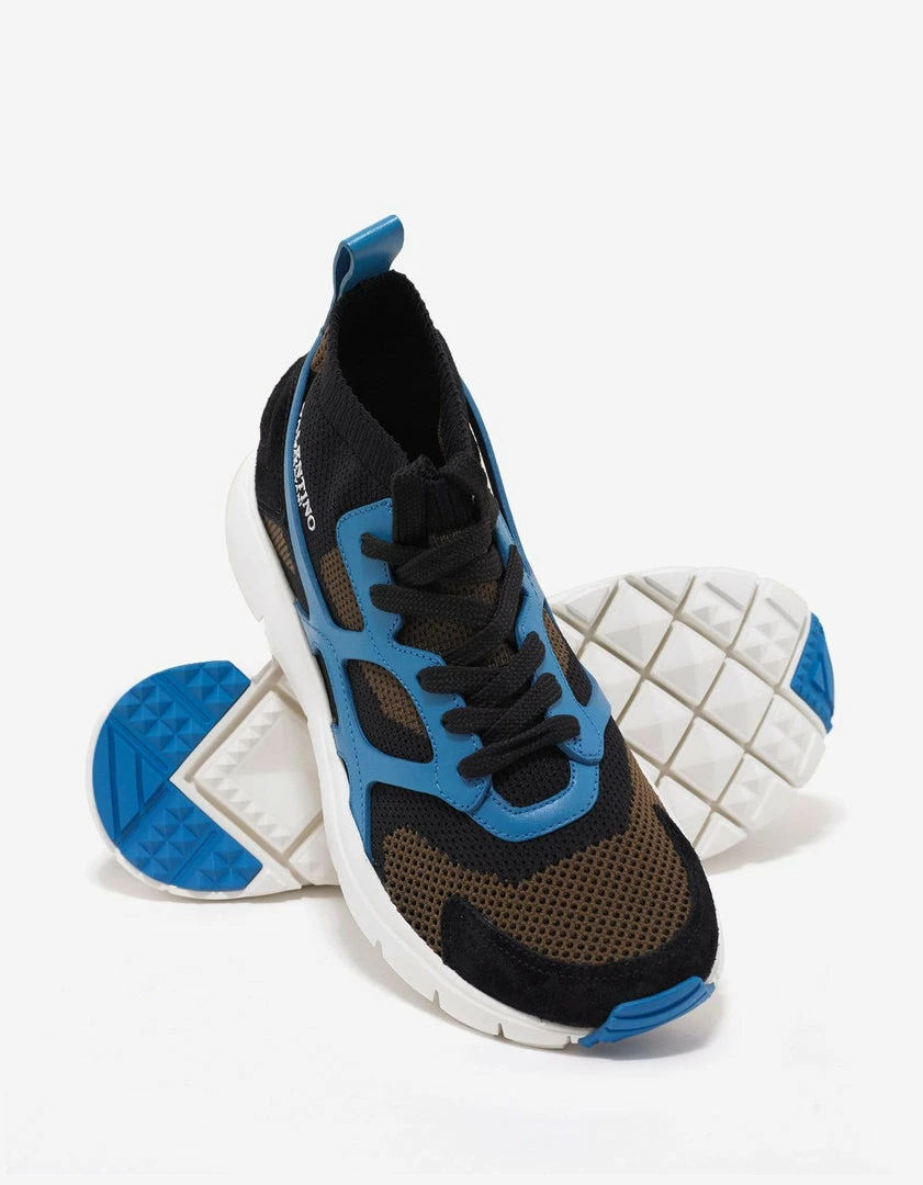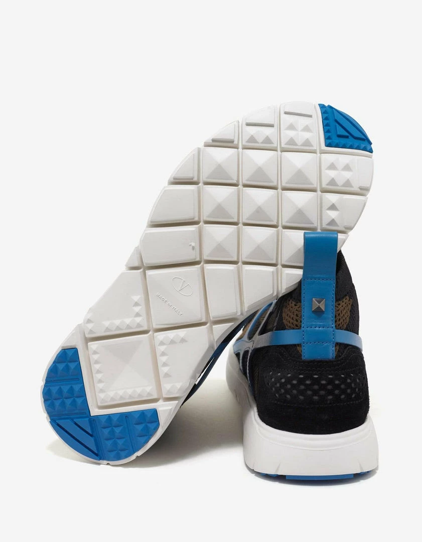 - Stretch-knit mesh upper with blue calf leather highlights and black suede panels