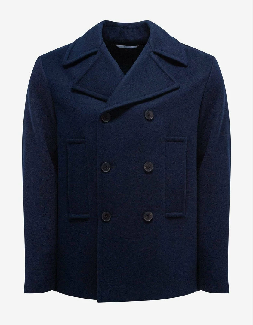 Best Pirce ⭐ Valentino Navy Blue Double-Breasted Wool Jacket 👏