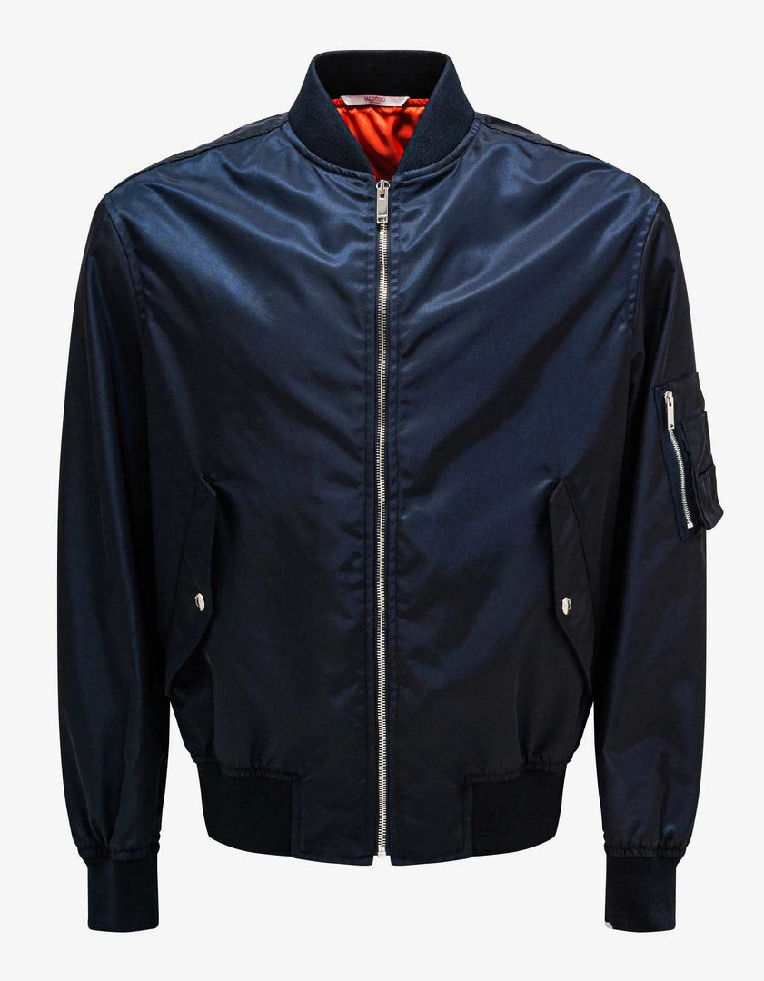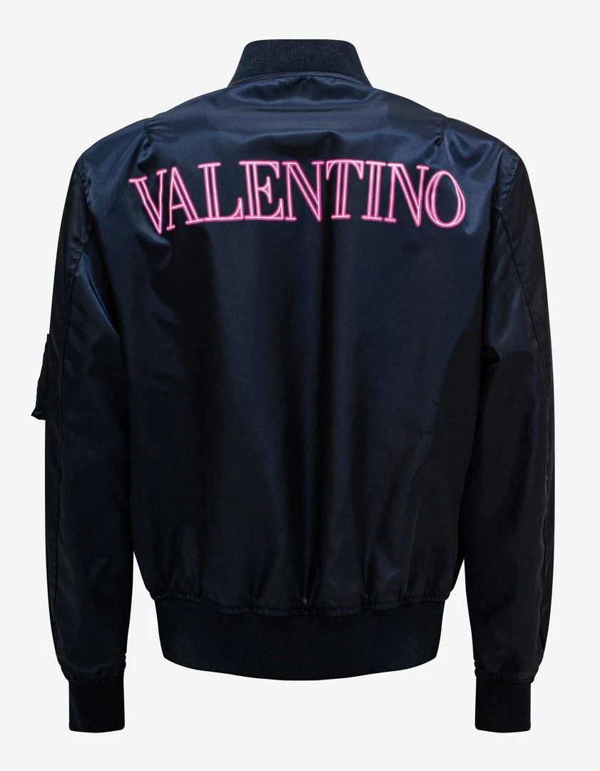 Best Pirce π Valentino Navy Blue Neon Universe Logo Bomber Jacket π―