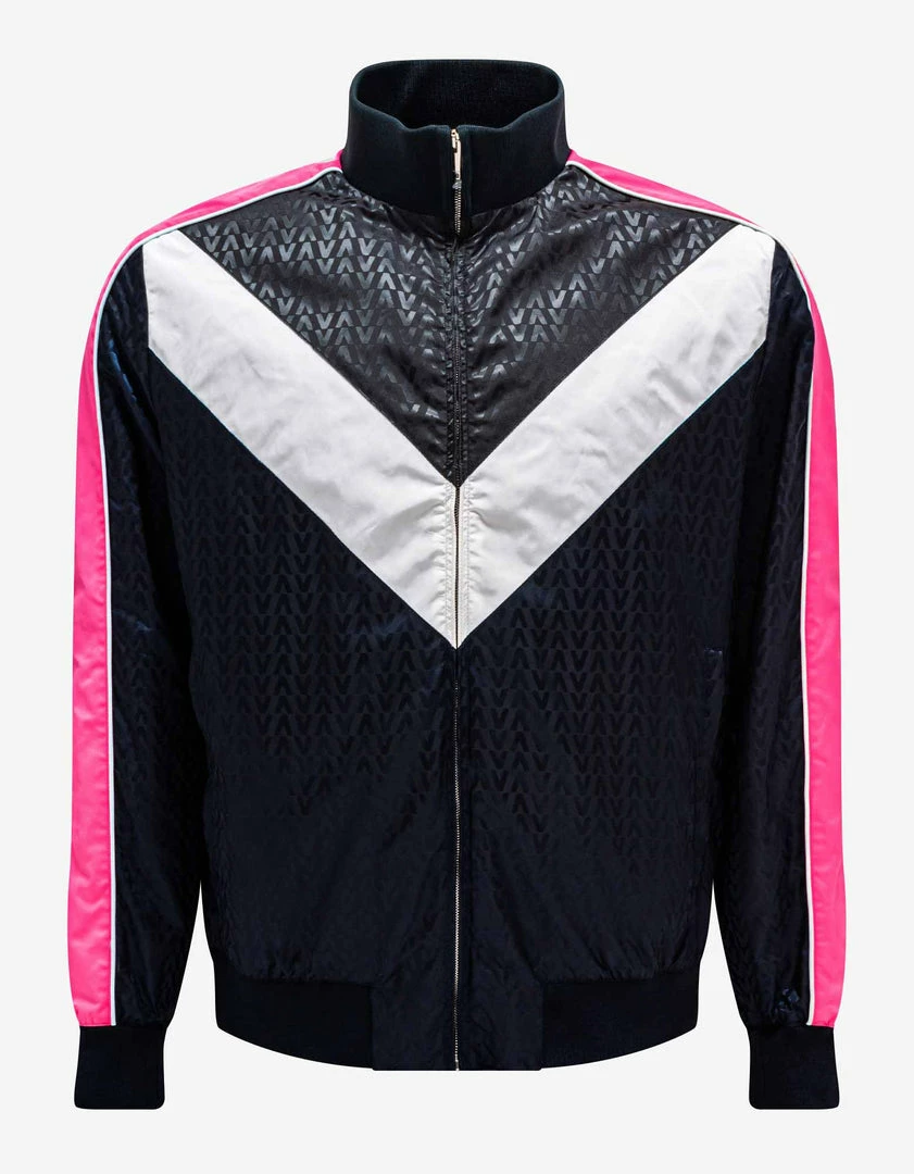 Budget 🔔 Valentino Navy Blue Optical Logo Jacquard Track Jacket Clothing 😍