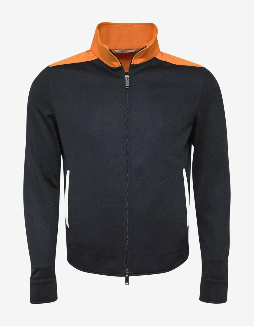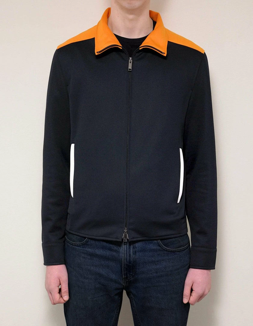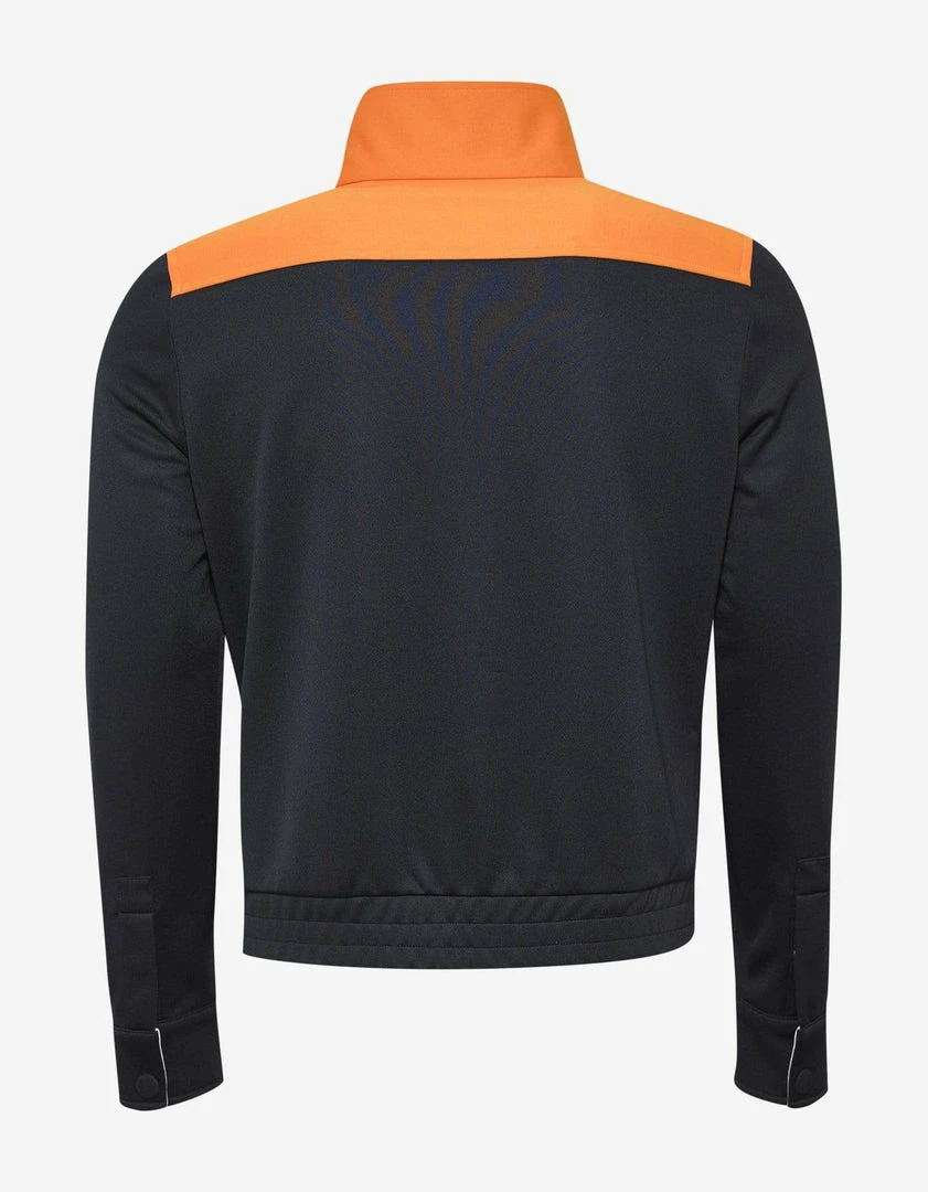 - Contrasting orange trim detailΒ at the shoulder yoke